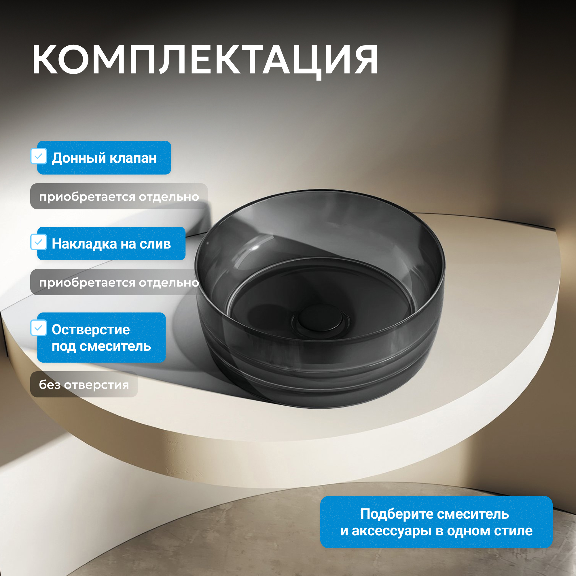 Раковина накладная прозрачная ABBER Kristall AT2804Onyx черная