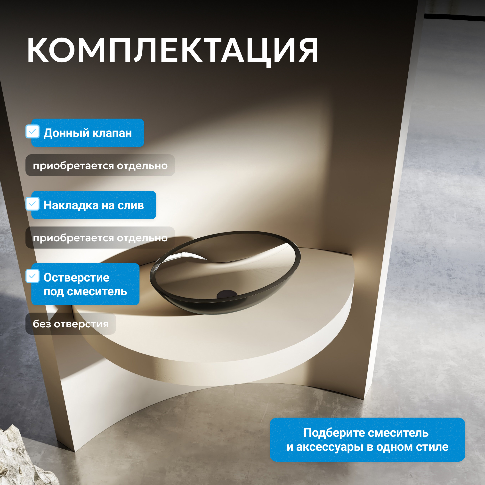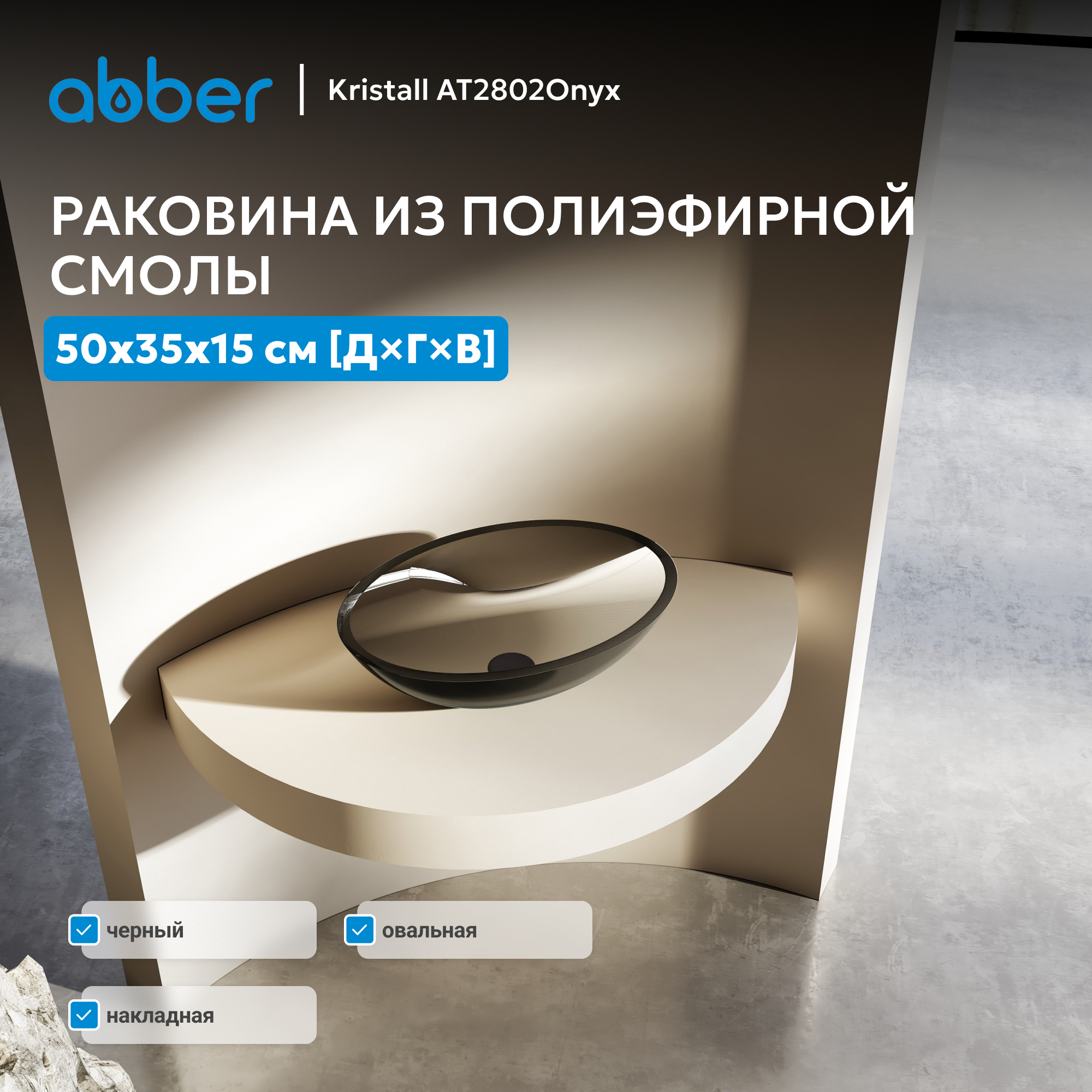 Раковина накладная прозрачная ABBER Kristall AT2802Onyx черная