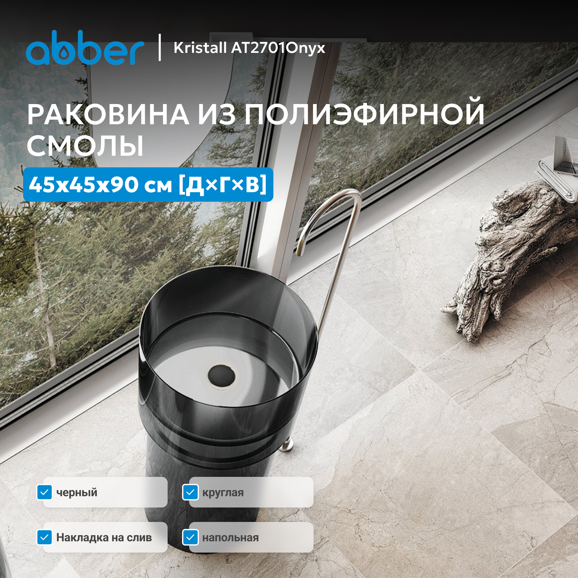 Раковина отдельностоящая прозрачная ABBER Kristall AT2701Onyx черная