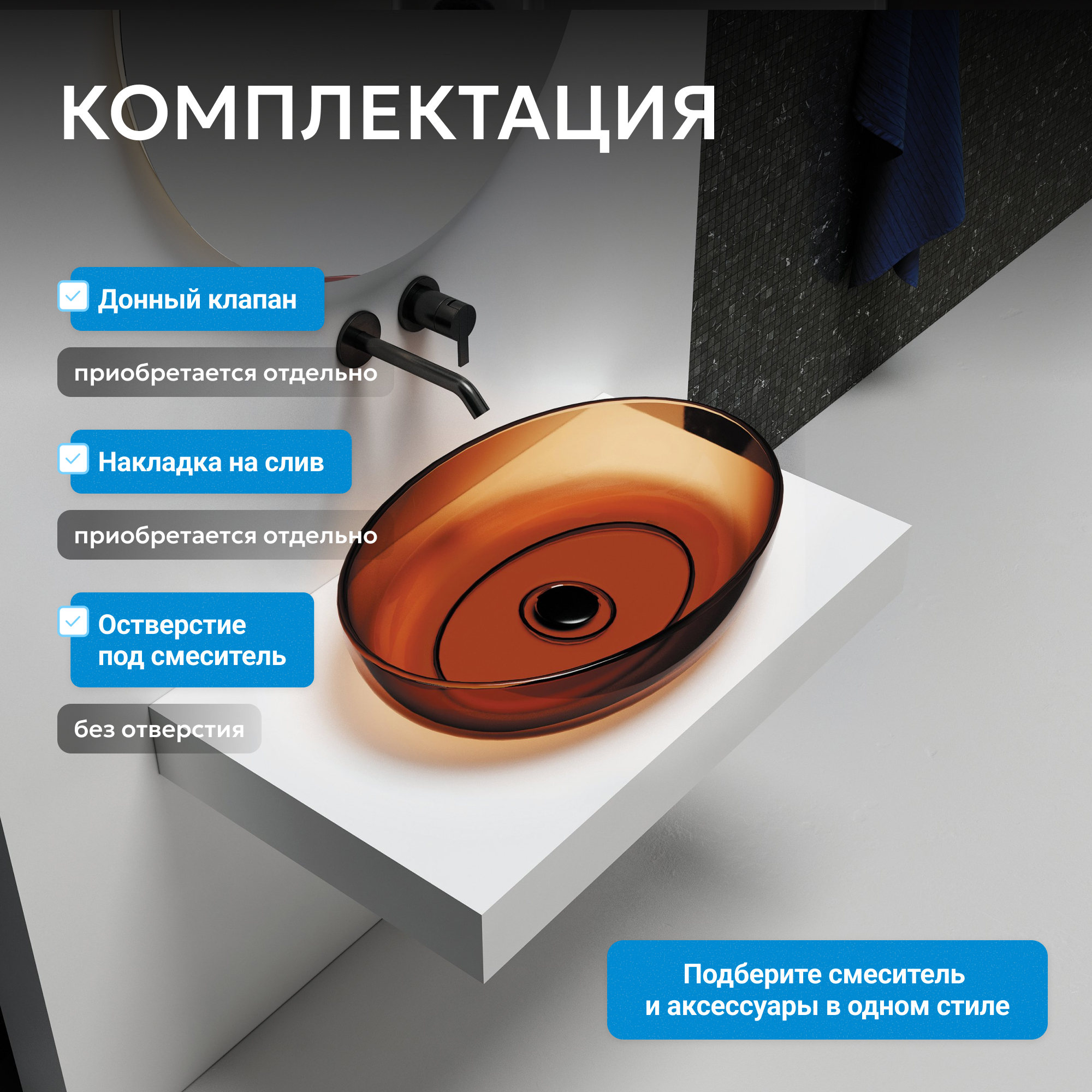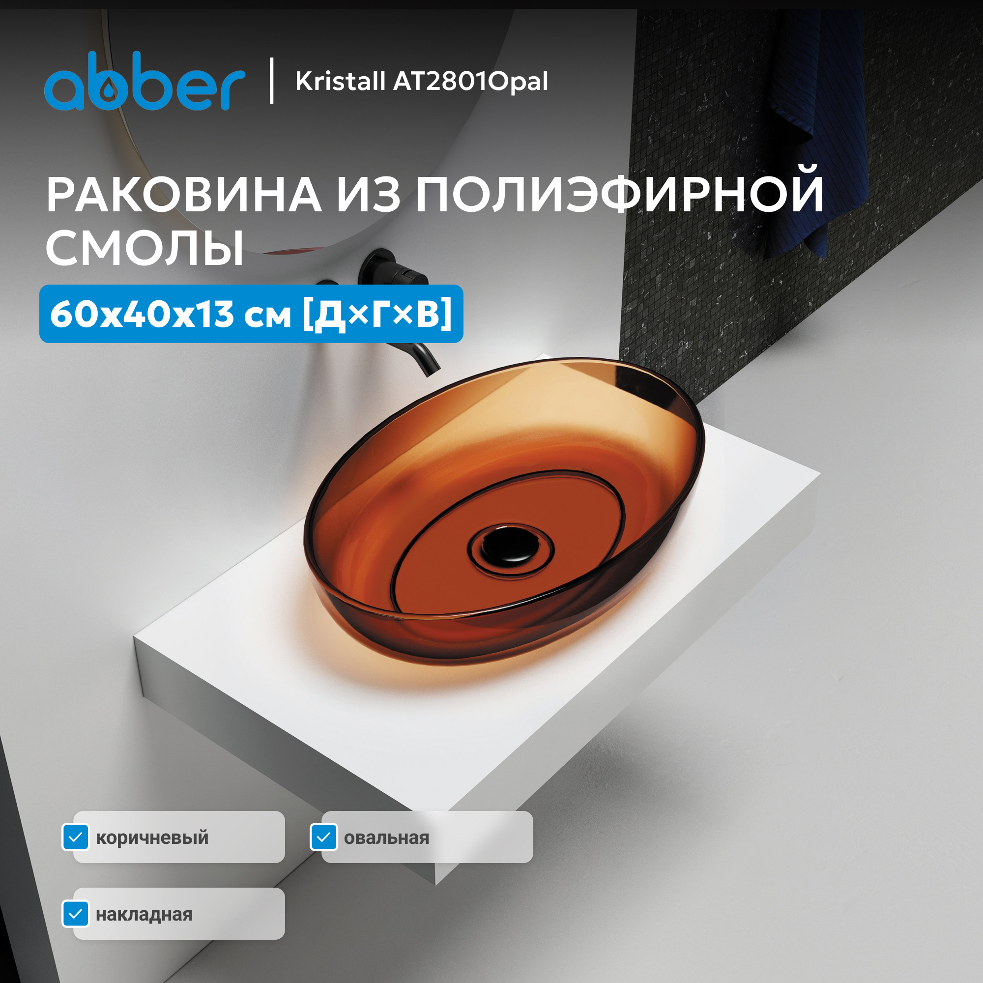 Раковина накладная прозрачная ABBER Kristall AT2801Opal коричневая