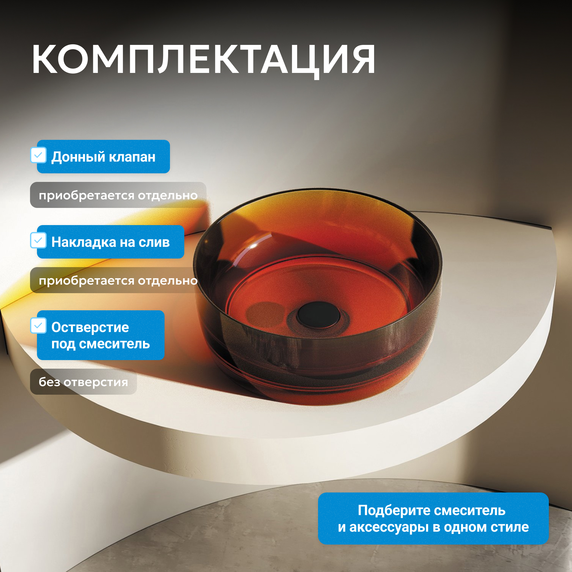 Раковина накладная прозрачная ABBER Kristall AT2804Opal коричневая