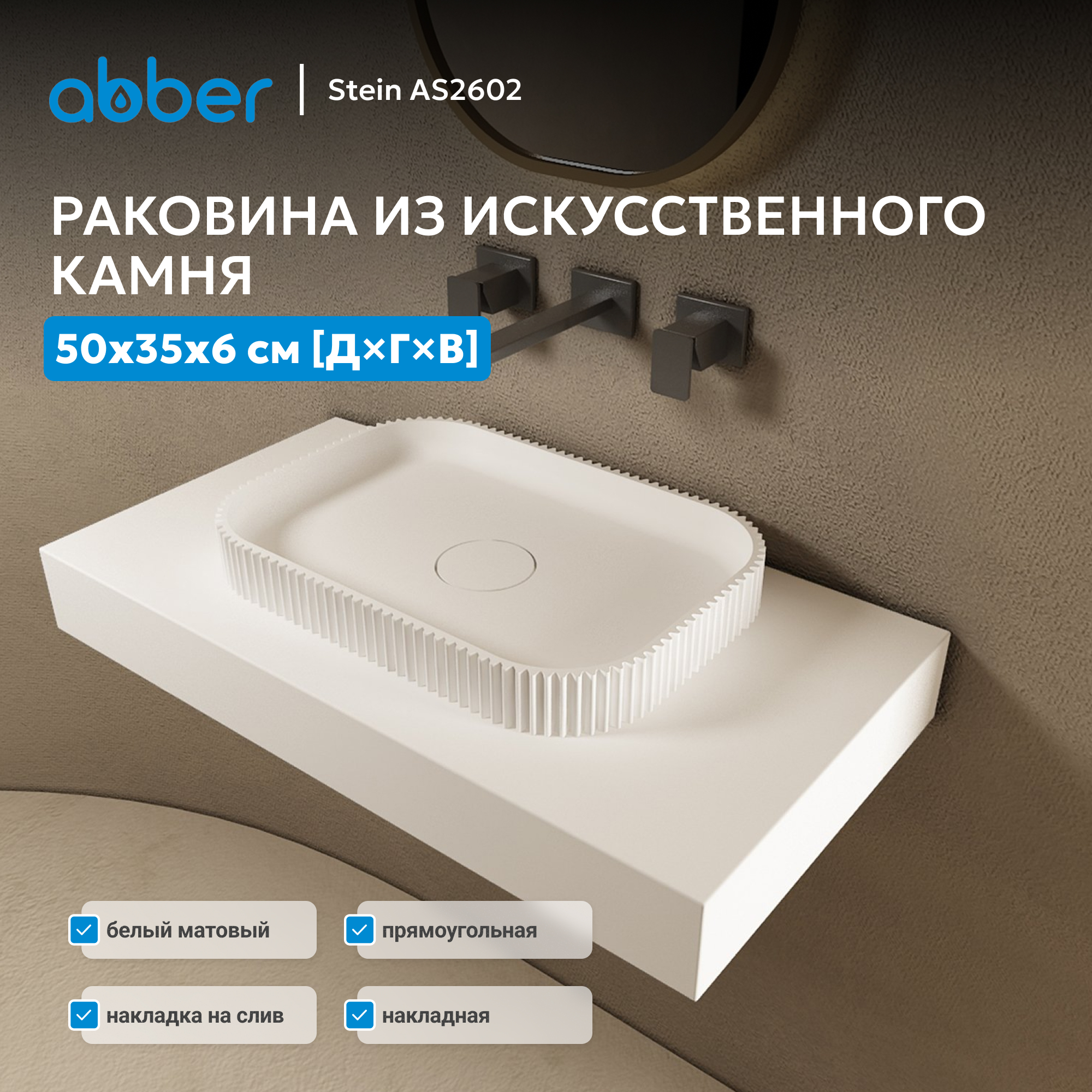 Раковина накладная ABBER Stein AS2602 белая матовая