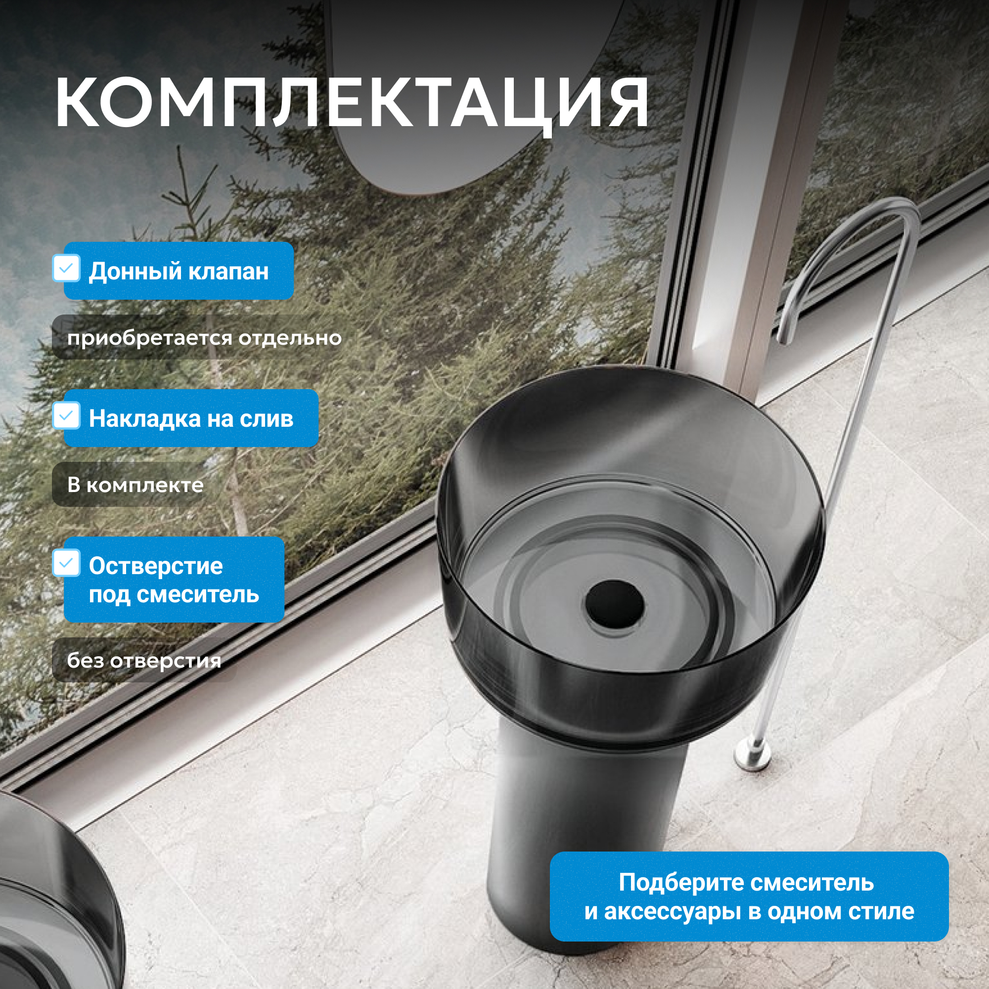 Раковина отдельностоящая прозрачная ABBER Kristall AT2702Onyx-H черная