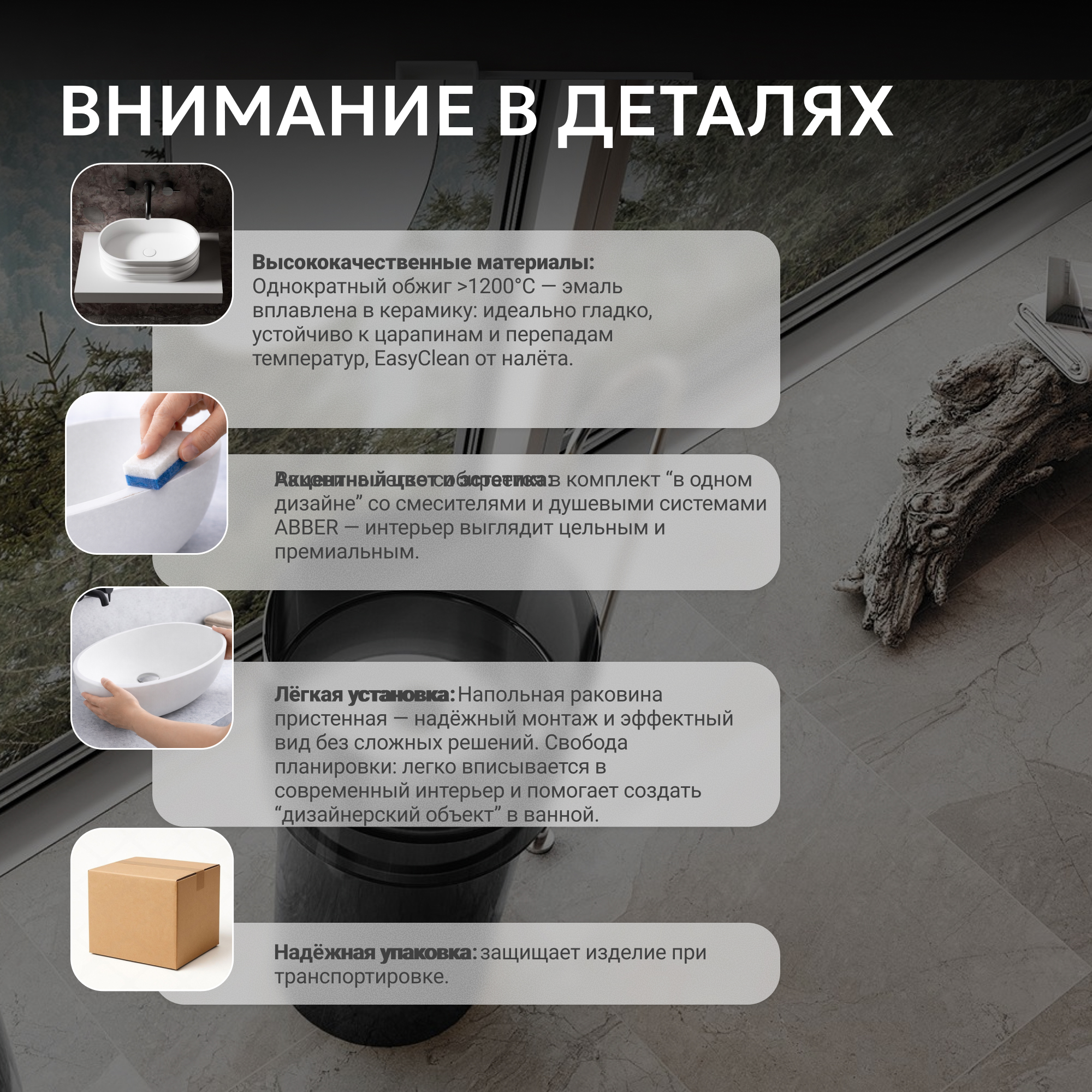 Раковина отдельностоящая прозрачная ABBER Kristall AT2701Onyx-H черная