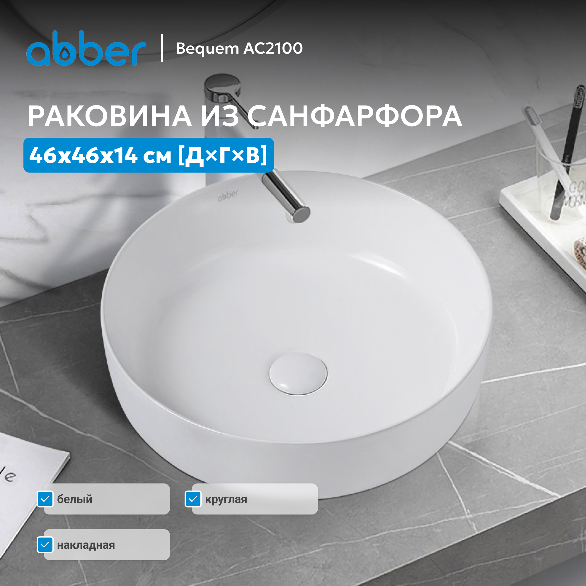 Раковина накладная ABBER Bequem AC2100 белая