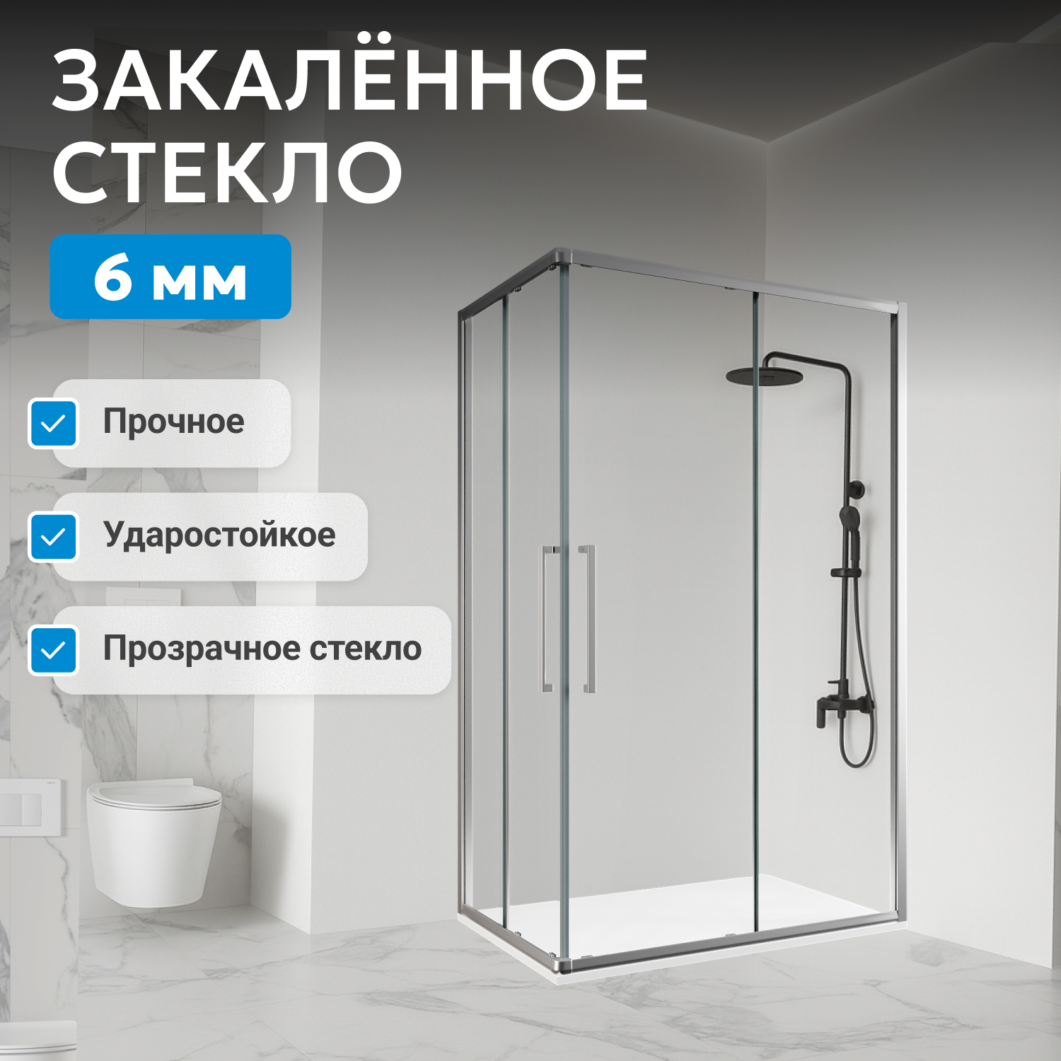 В производстве используются современные технологии, соответствующие немецким стандартам качества. Прозрачное стекло толщиной 6 мм устойчиво к механическим повреждениям, а хромированный профиль сочетается с разными стилями интерьера и сохраняет внешний вид даже при интенсивном использовании.