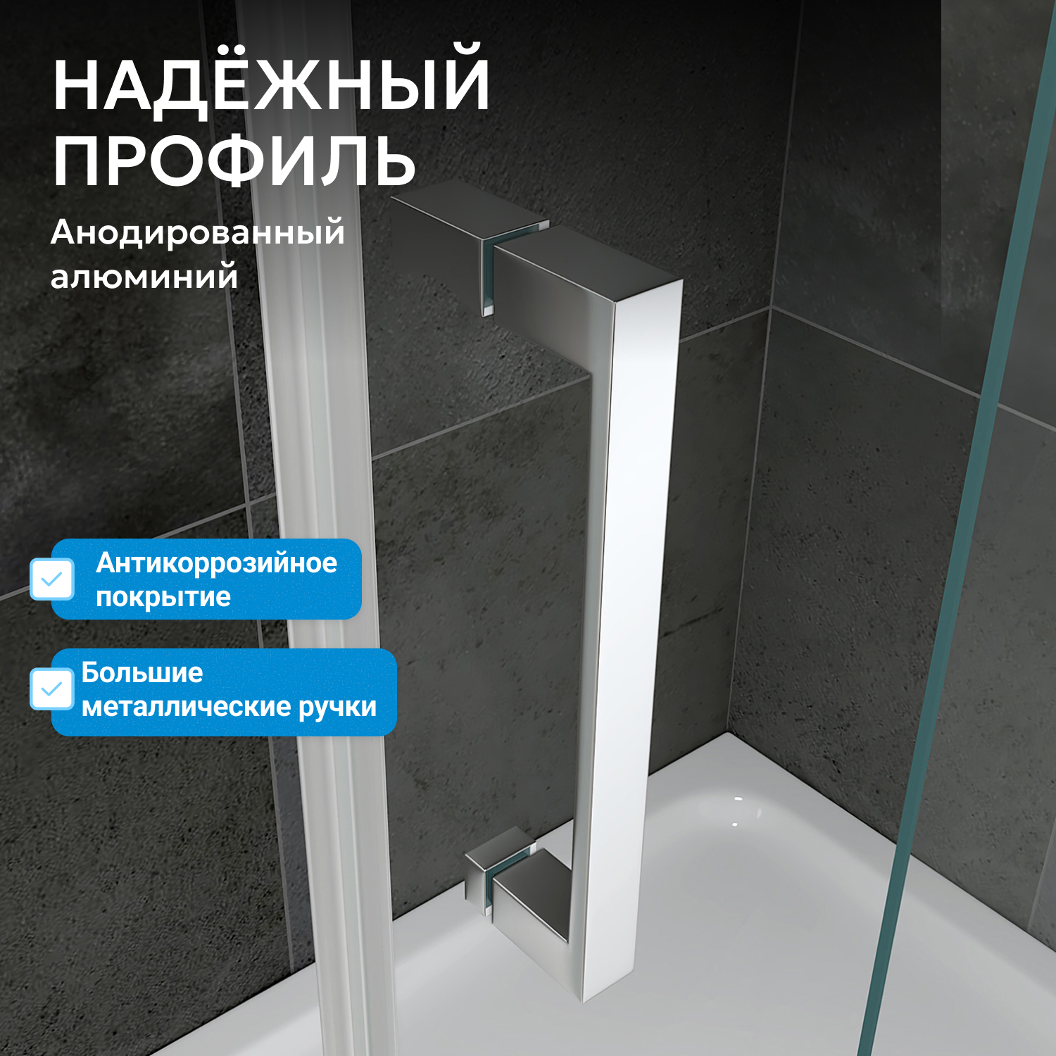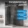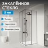 Профиль выполнен в хромированном цвете, что упрощает уход и гармонирует с современными интерьерами. Закалённое прозрачное стекло толщиной 5 мм обеспечивает безопасность и визуально увеличивает пространство. Гарантия производителя — 3 года.