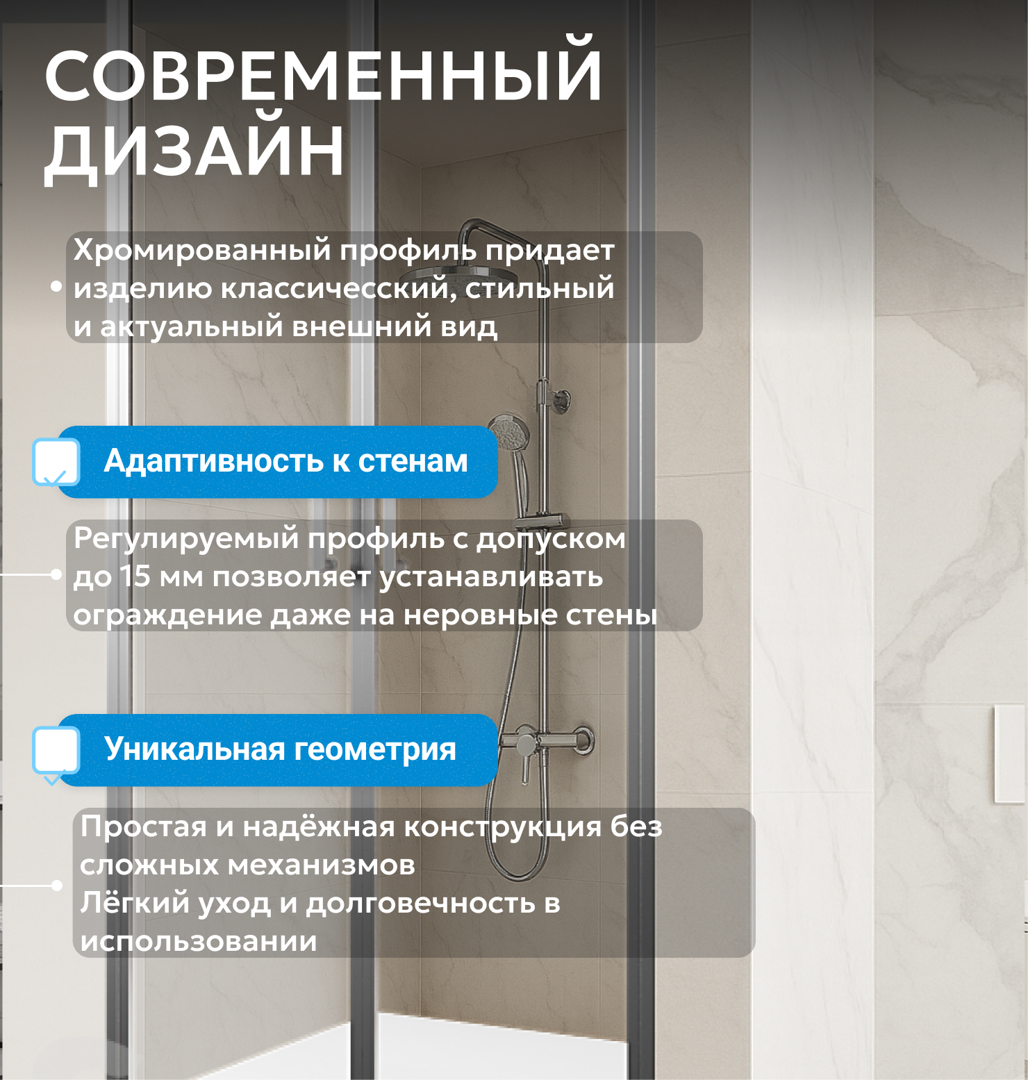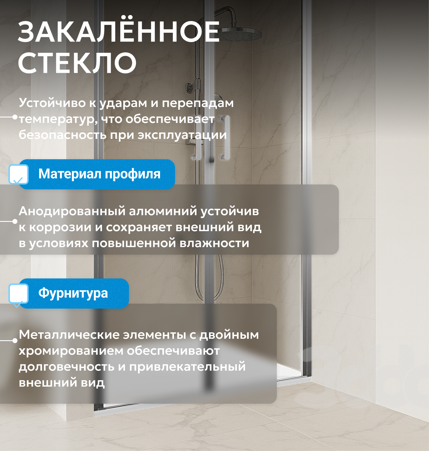 Душевые двери ABBER изготавливаются из анодированного алюминиевого профиля и закалённого, ударопрочного стекла. Также стеклянные душевые двери обладают рядом преимуществ: они легко моются, надежны и долговечны в эксплуатации.