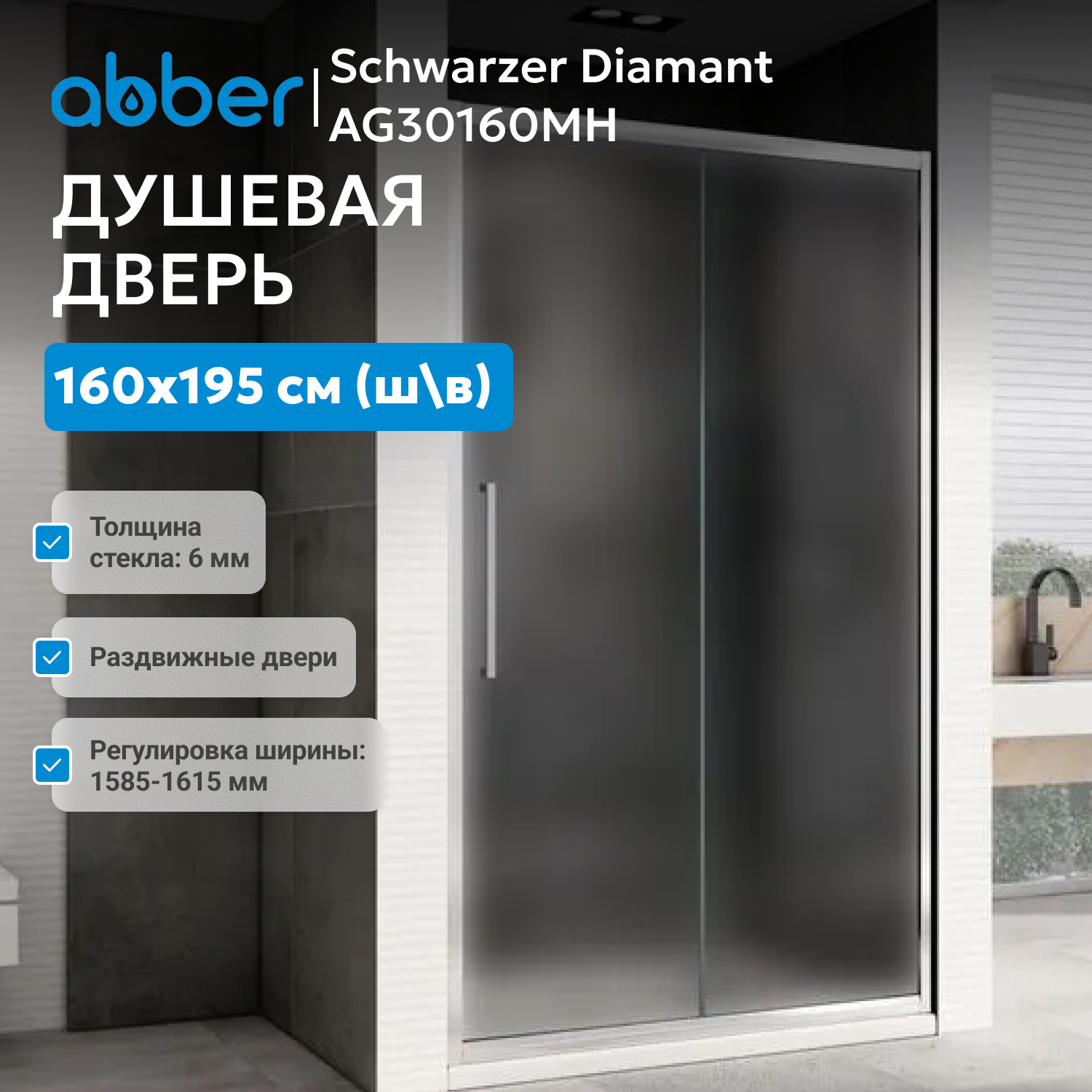 Душевая дверь ABBER Schwarzer Diamant AG30160MH