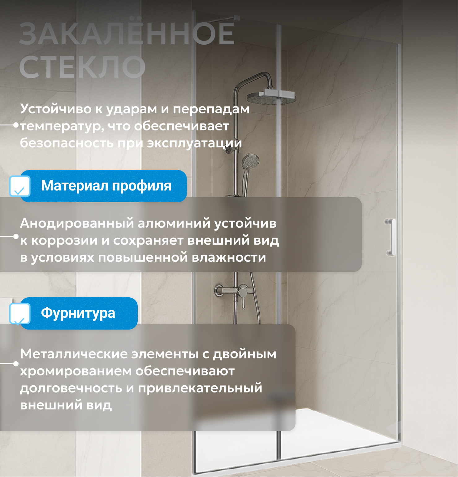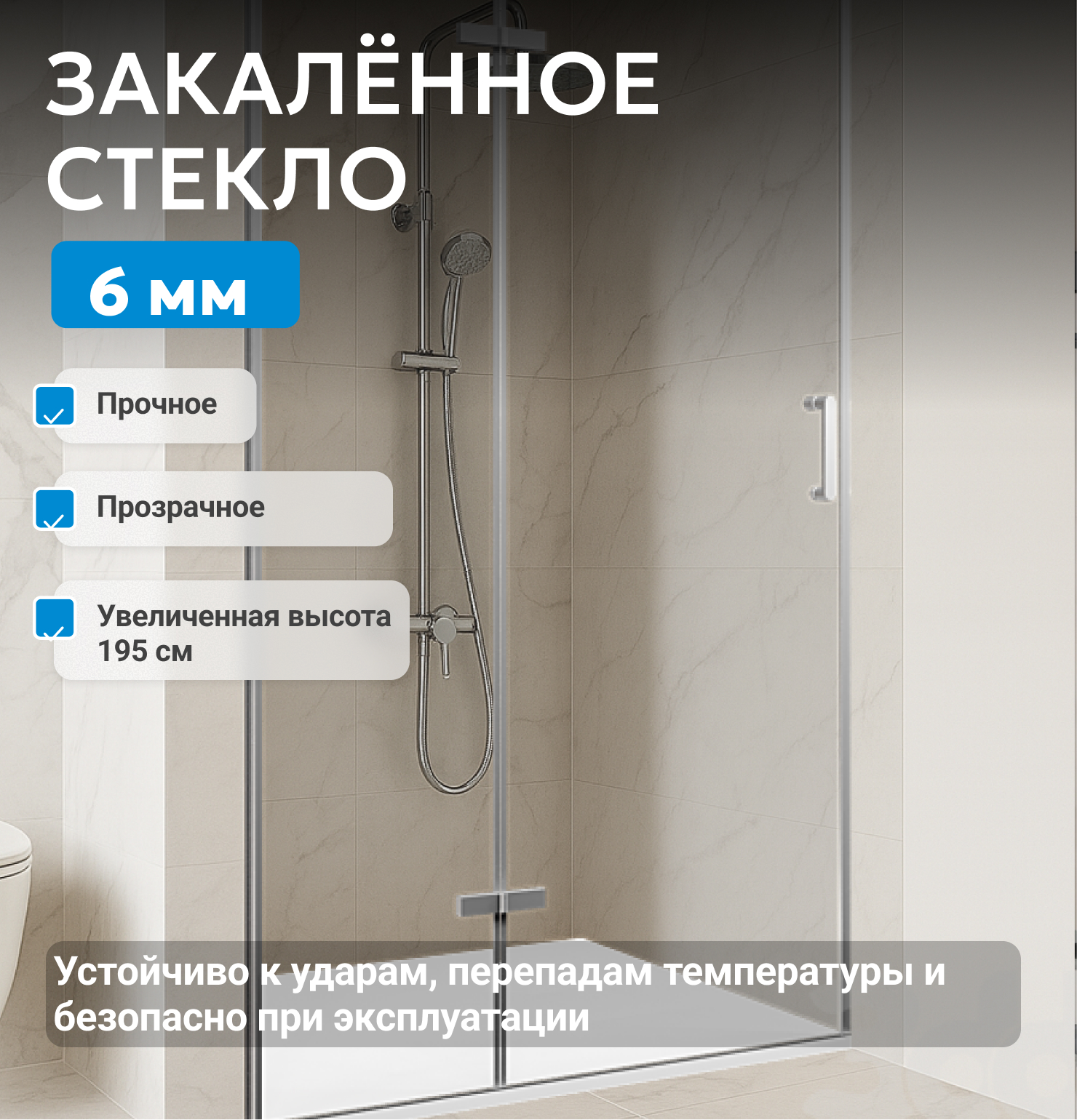- закаленное, прозрачное стекло 6 мм