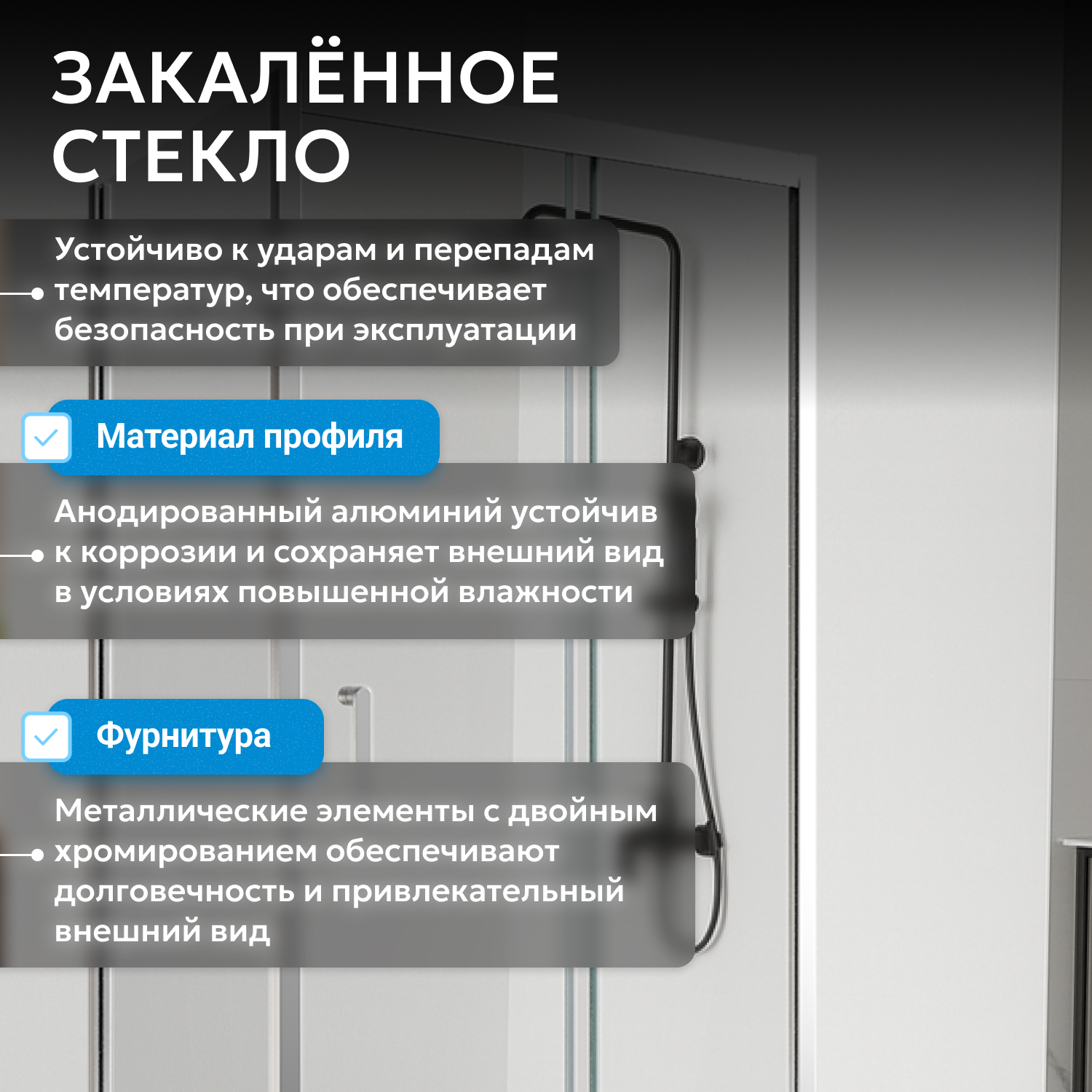 Конструкция допускает установку с низким поддоном (приобретается отдельно), а универсальная комплектация облегчает подбор. Высота изделия составляет 190 см, что обеспечивает удобство эксплуатации. Душевой уголок рассчитан на длительный срок службы.