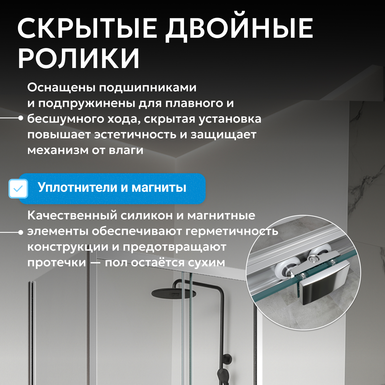 Душевой уголок ABBER Schwarzer Diamant AG301005-S705 сочетает современный минималистичный дизайн, простоту монтажа, надежность конструкции и оптимальное соотношение цены и срока службы.