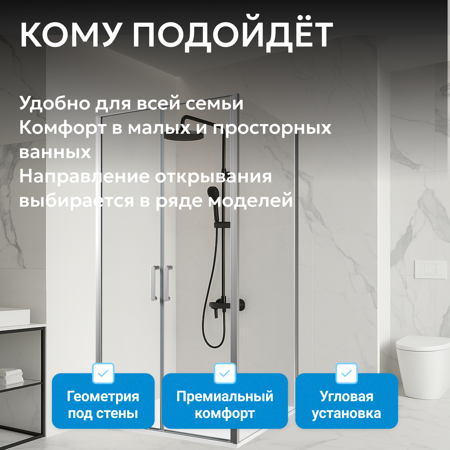 Модель совместима с низкими поддонами (приобретаются отдельно), что позволяет подобрать индивидуальное решение. Установка упрощена благодаря продуманной конструкции. Гарантия 3 года подтверждает качество и надежность продукции ABBER.