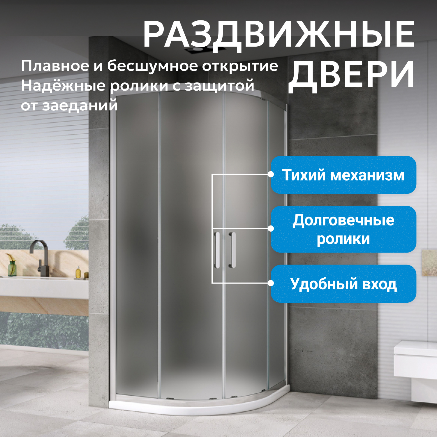 Раздвижные двери с двойными роликами обеспечивают плавное и бесшумное открывание. Ширина входа 524 мм подходит для ежедневного использования. Металлические ручки устойчивы к коррозии и сохраняют внешний вид даже при интенсивной эксплуатации. Поддон не входит в комплект, что позволяет выбрать подходящий вариант по высоте и стилю.
