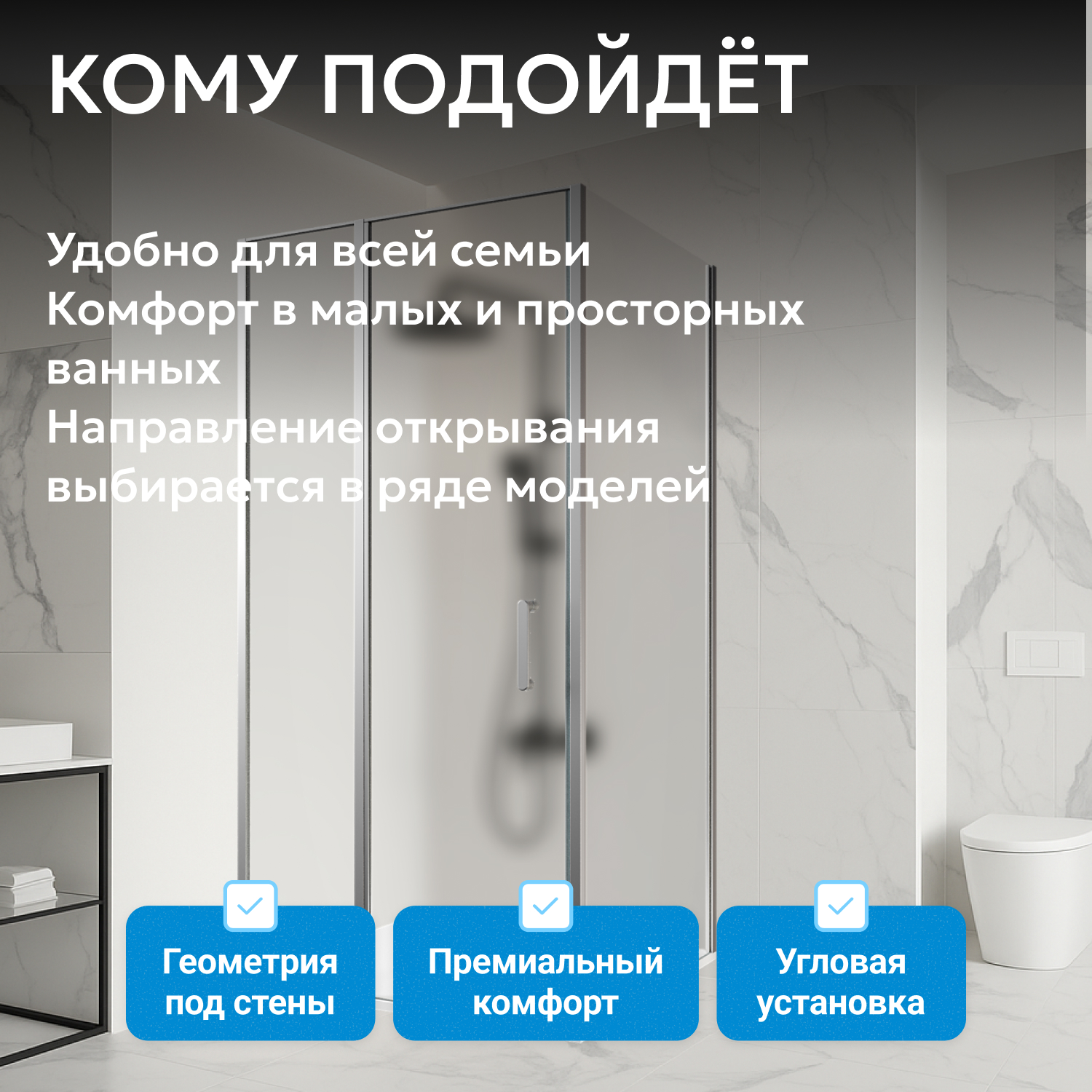 Модель подойдёт тем, кто ценит долговечность, безопасность и минимализм, органично интегрируется в современные интерьеры квартир и частных домов. Идеальный выбор для тех, кто самостоятельно подбирает поддон и рассчитывает на сервисную поддержку в России.