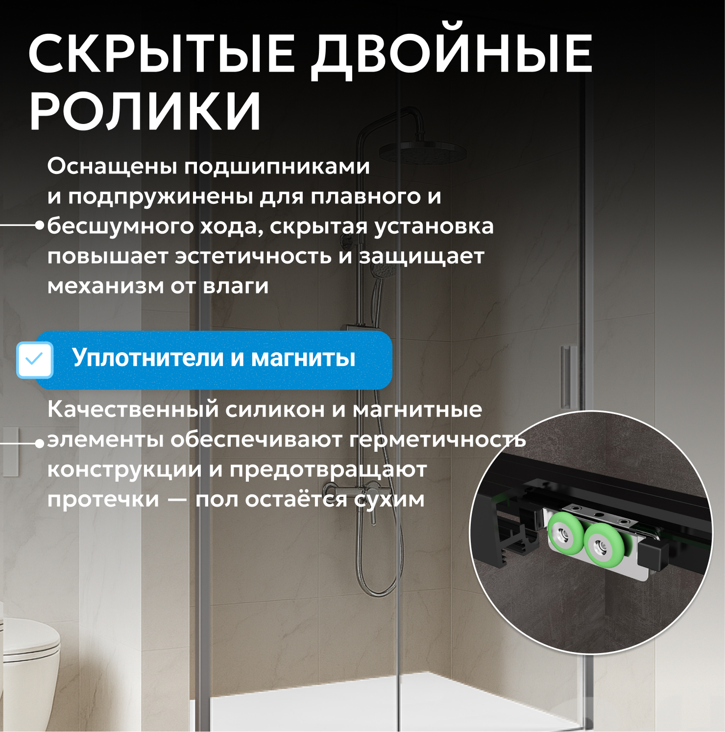 ширина пристенного профиля 60 мм, Soft-close доводчики позаботятся о плавной и бесшумной фиксации двери в крайних положениях