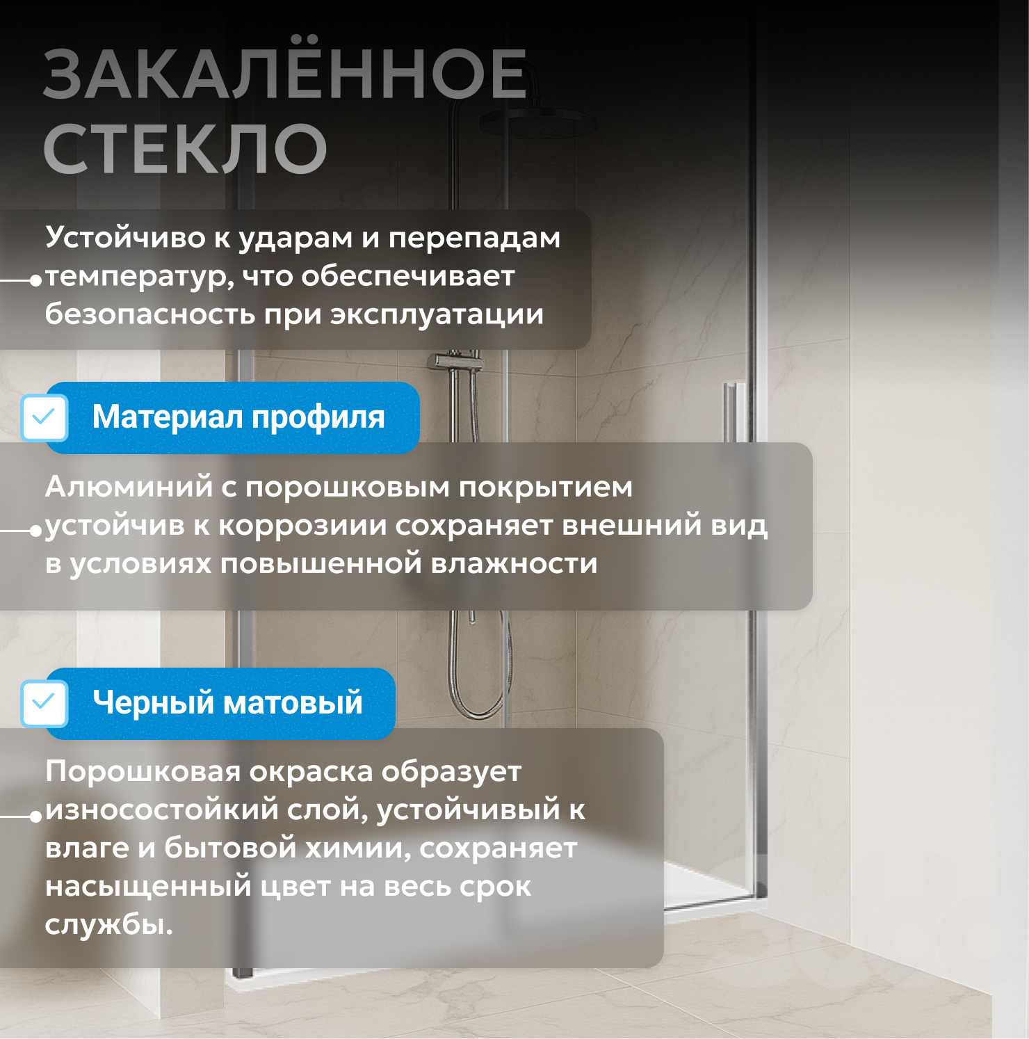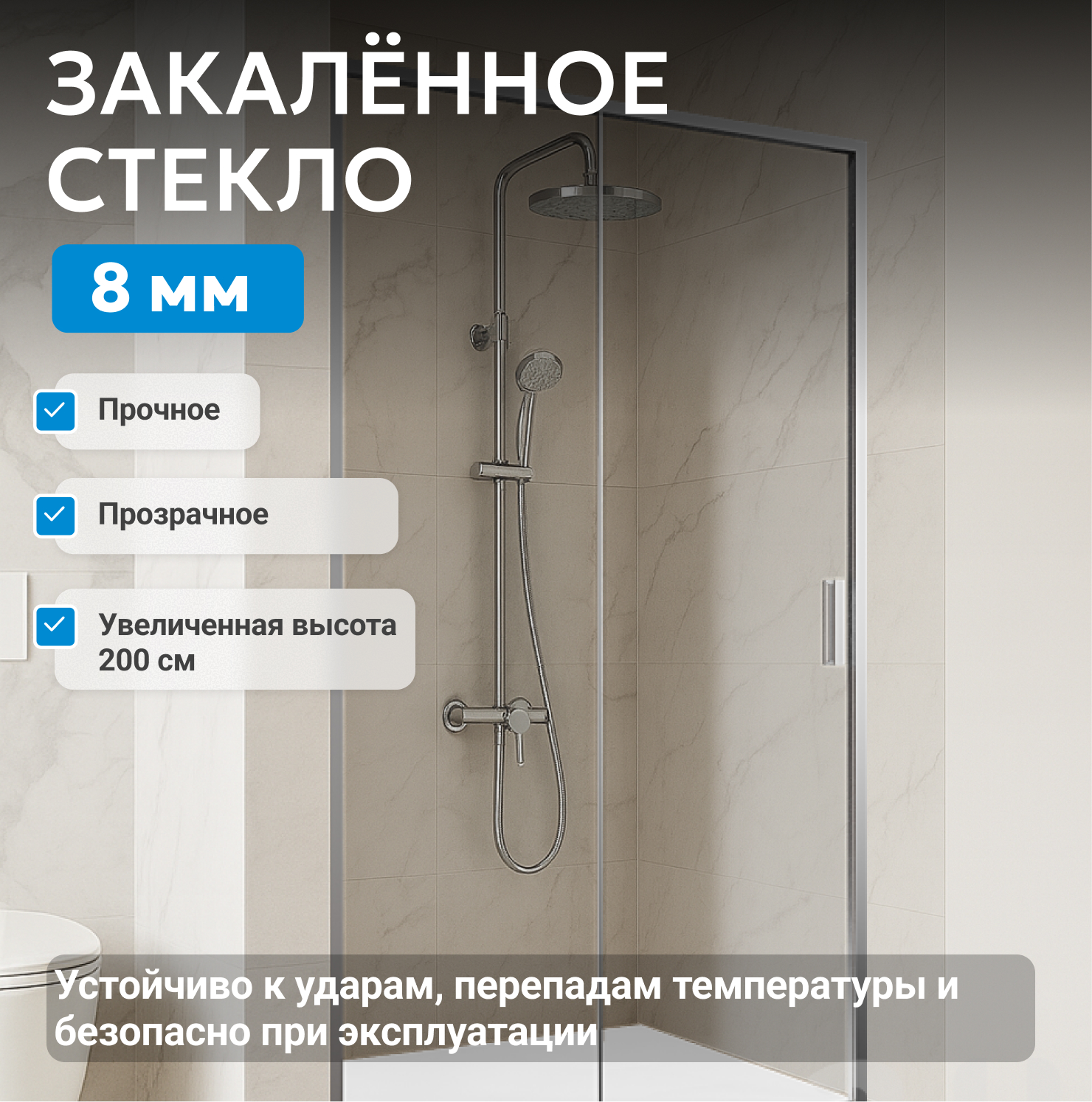 - закаленное, прозрачное стекло 8 мм