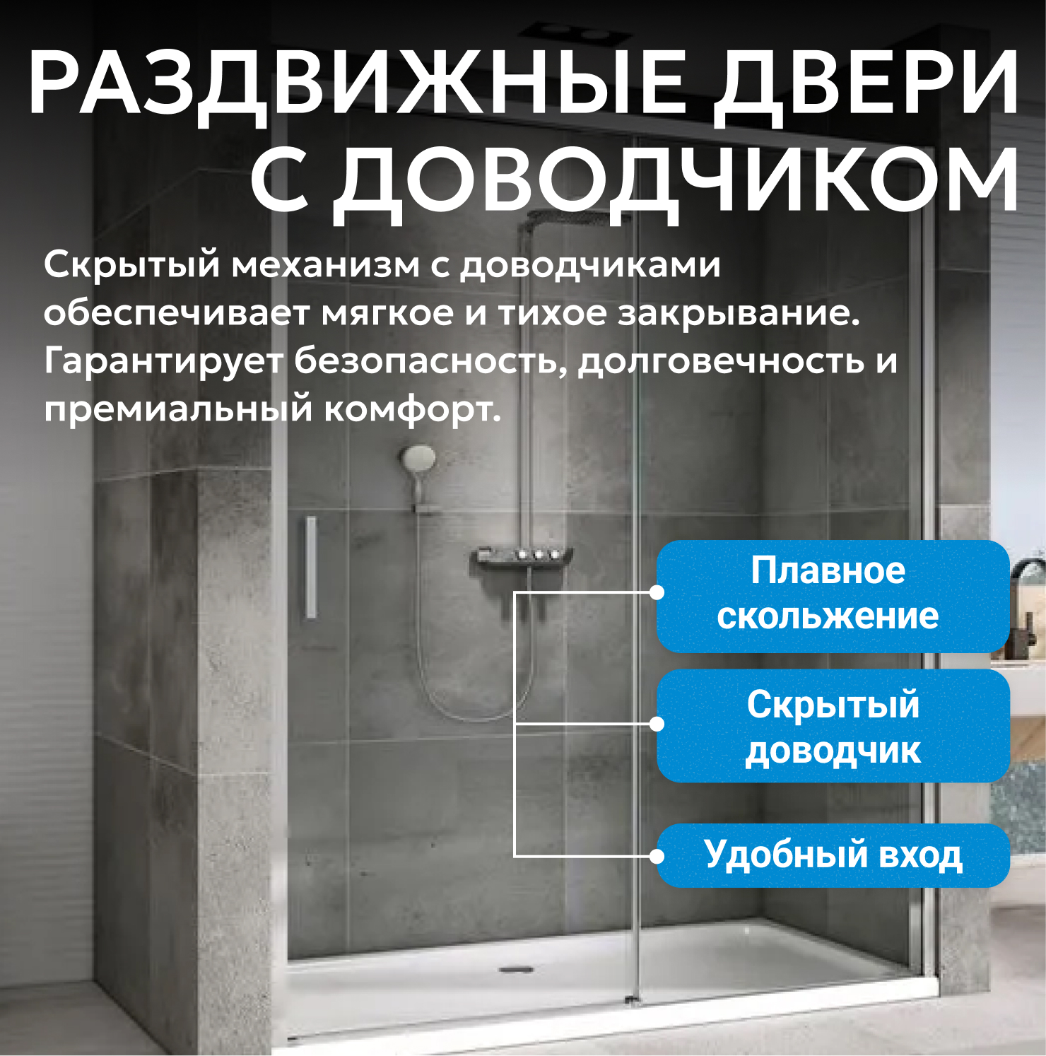 - Soft-close доводчики позаботятся о плавной и бесшумной фиксации двери в крайних положениях
