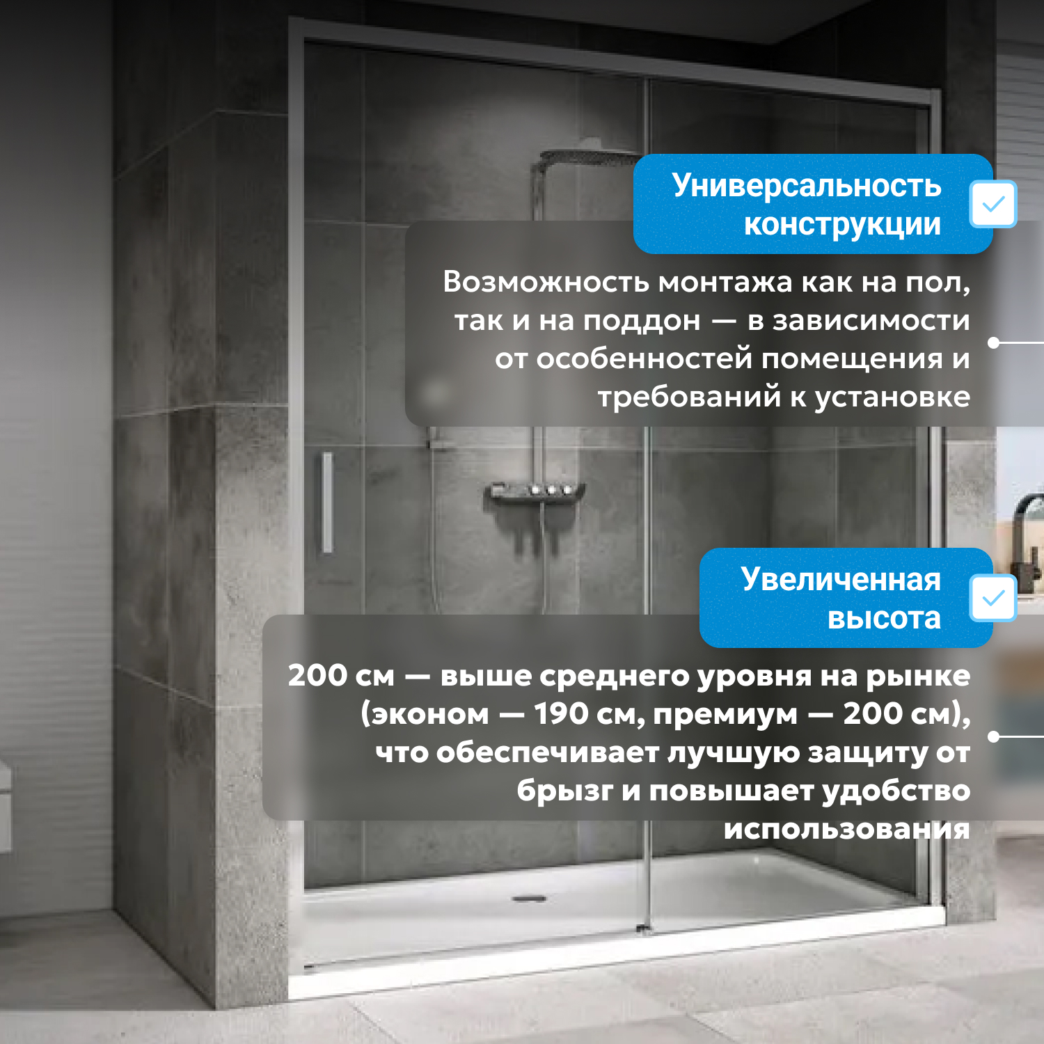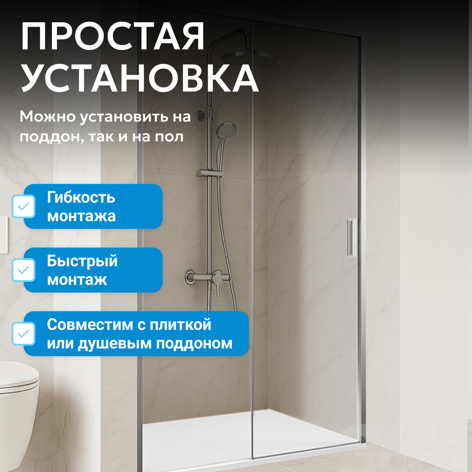 - возможна установка на пол и на поддон, поддон приобретается отдельно