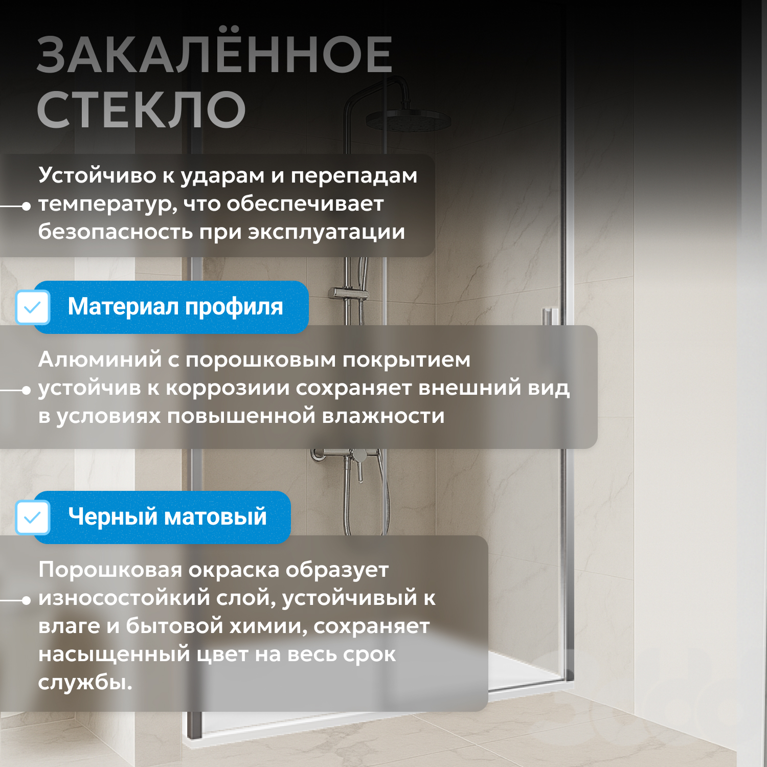 - закаленное, прозрачное стекло 8 мм
