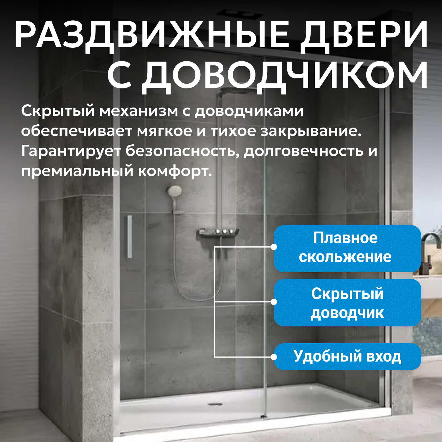 - Soft-close доводчики позаботятся о плавной и бесшумной фиксации двери в крайних положениях