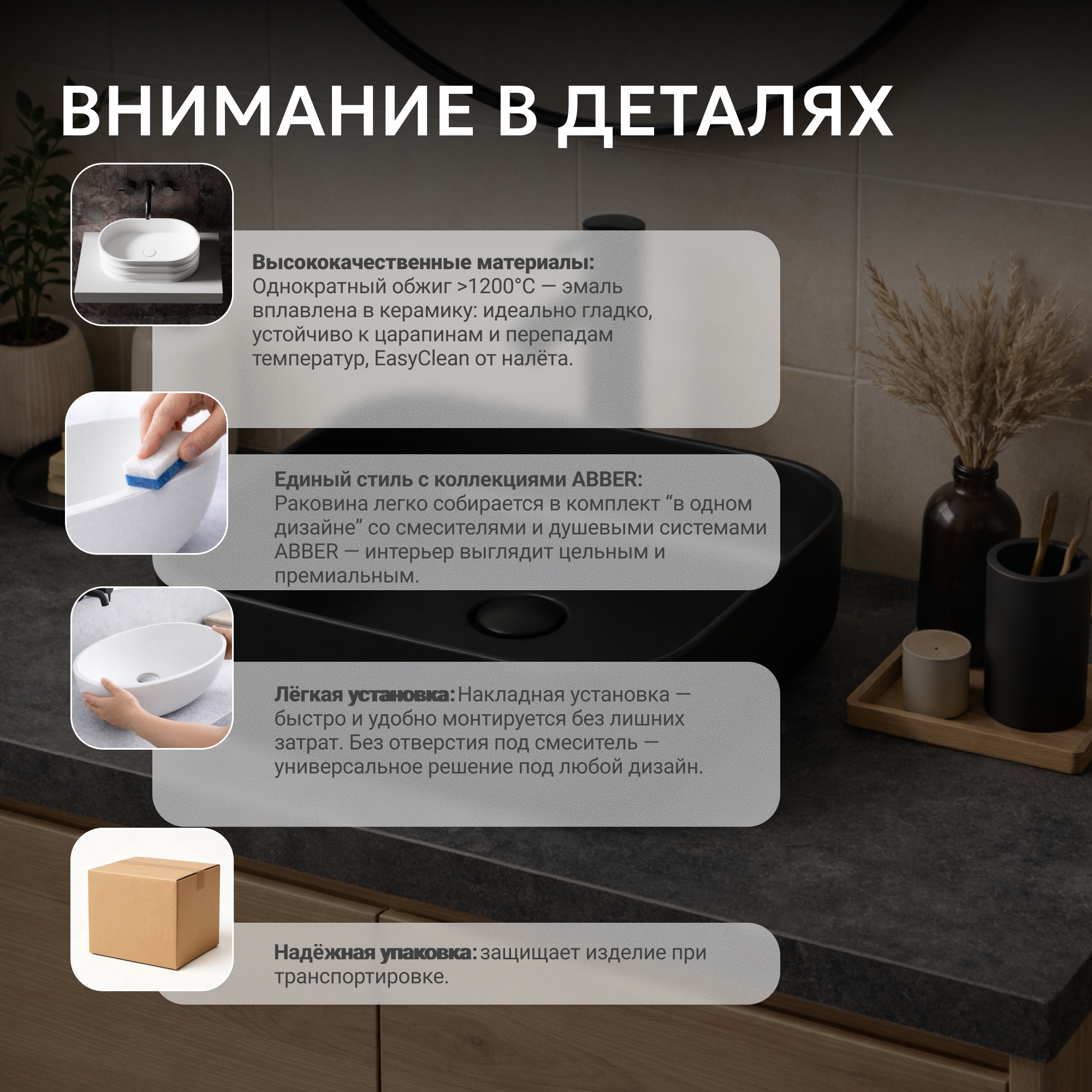Раковина накладная ABBER Rechteck AC2211MB черная матовая