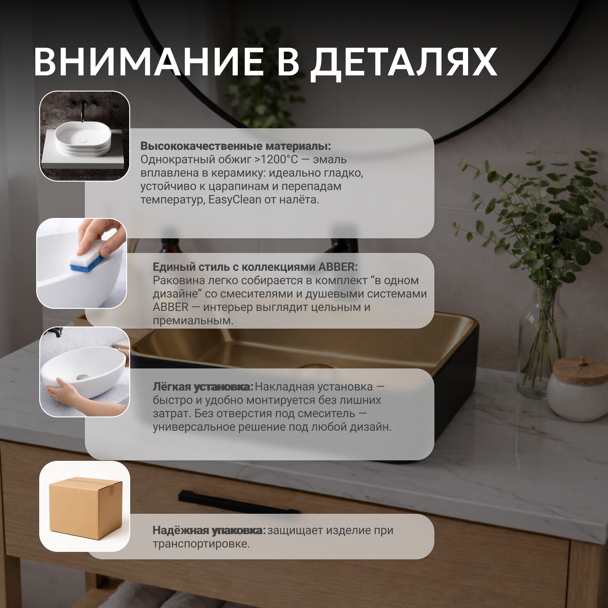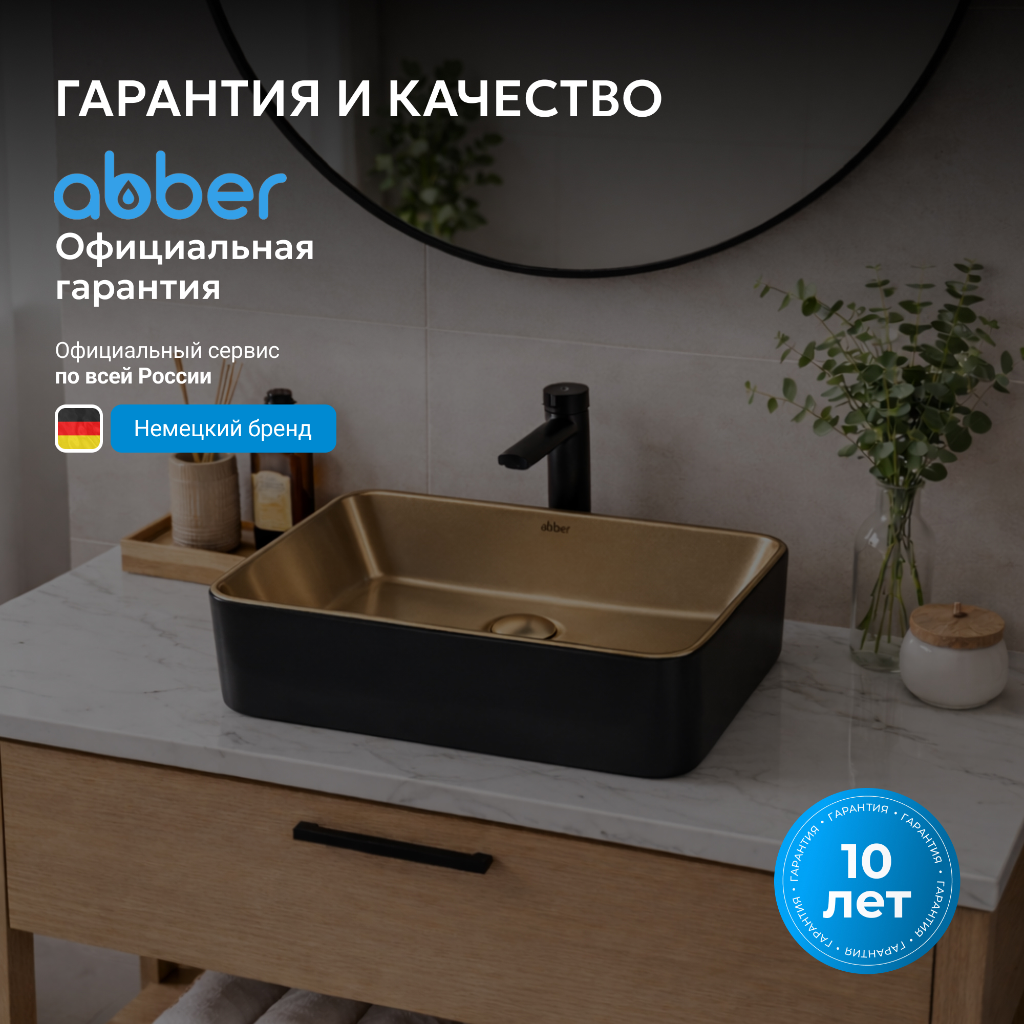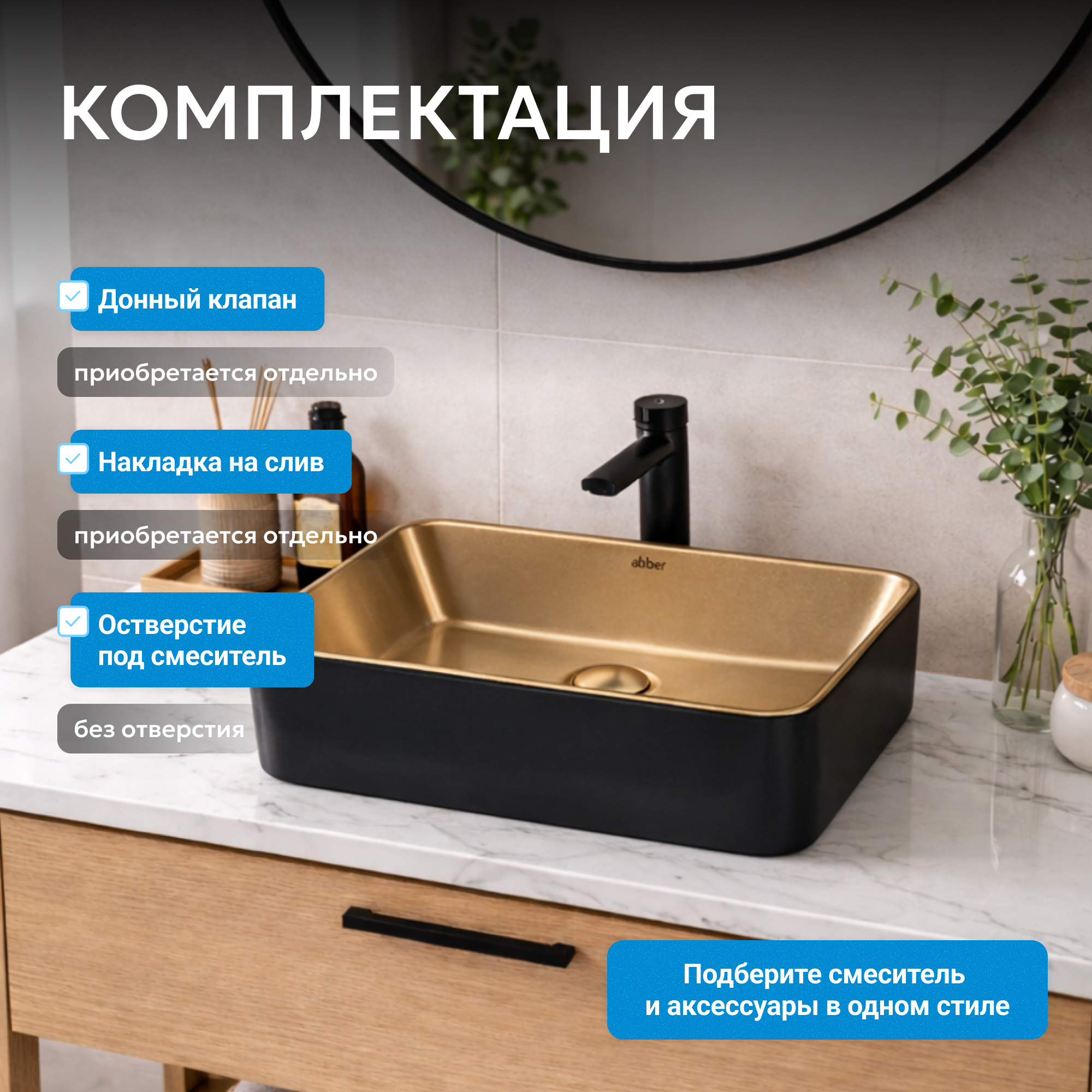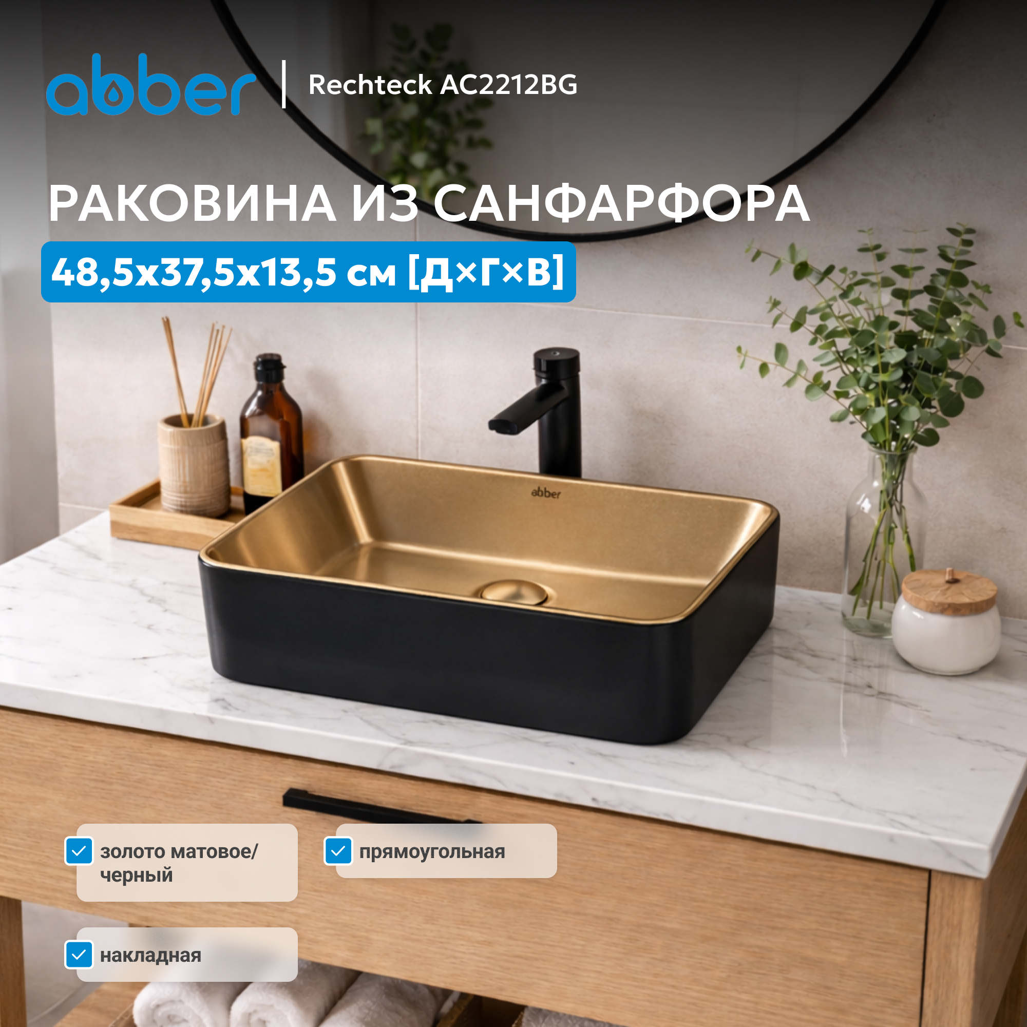 Раковина накладная ABBER Rechteck AC2212BG матовое золото с черным