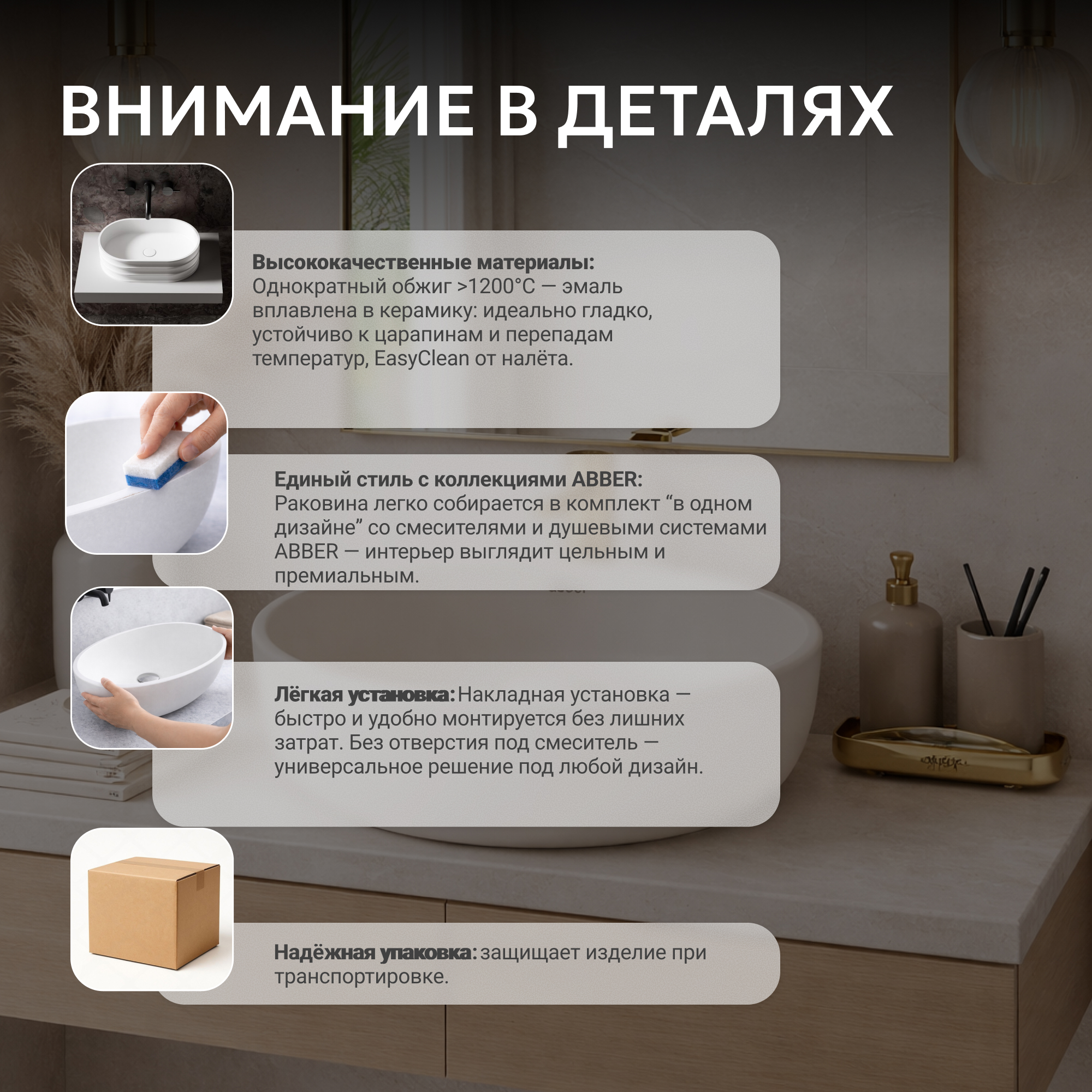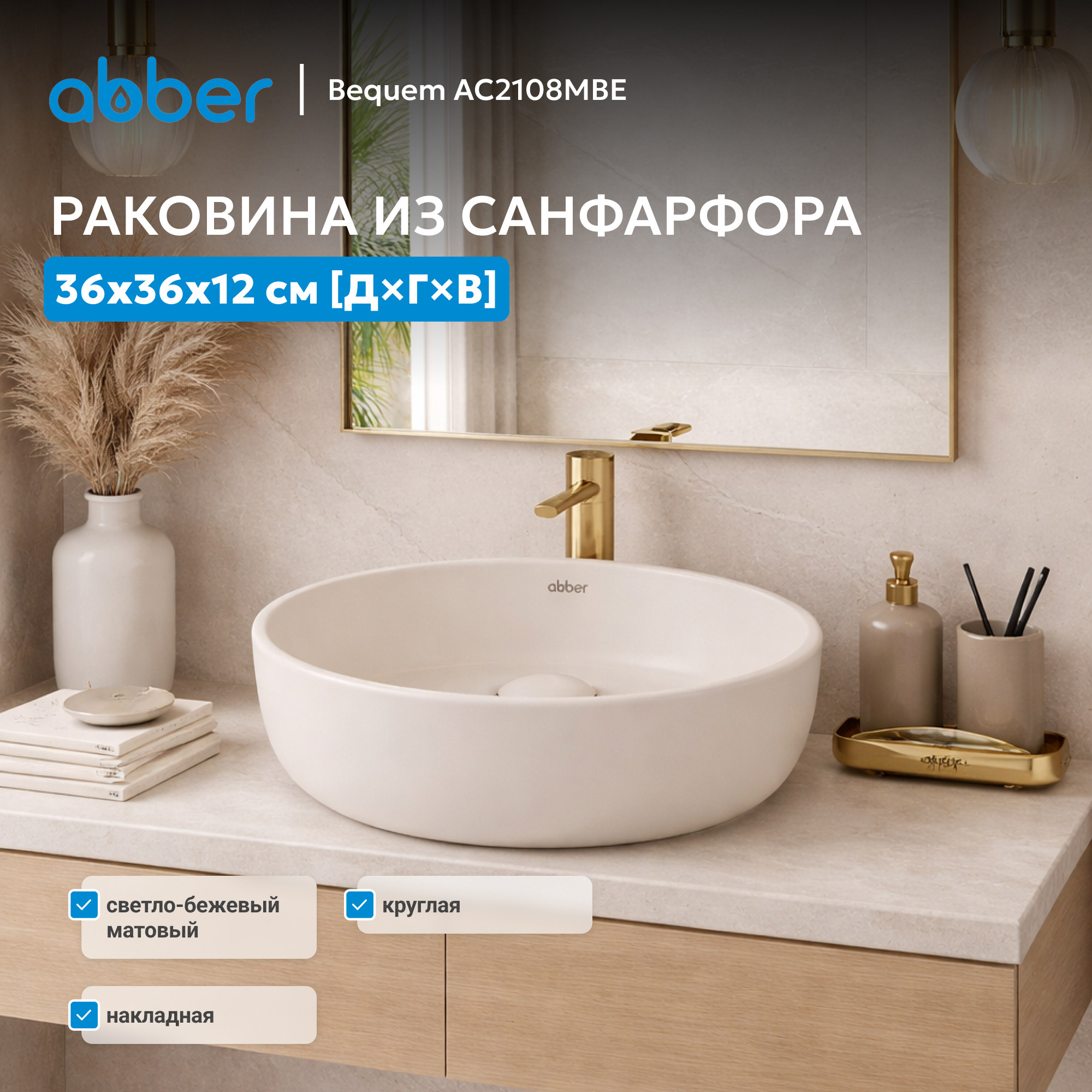 Раковина накладная ABBER Bequem AC2108MBE светло-бежевая матовая