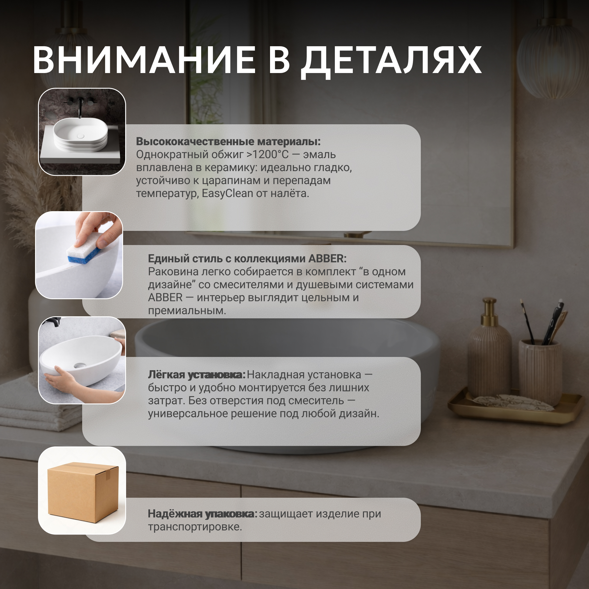 Раковина накладная ABBER Bequem AC2108MLG светло-серая матовая
