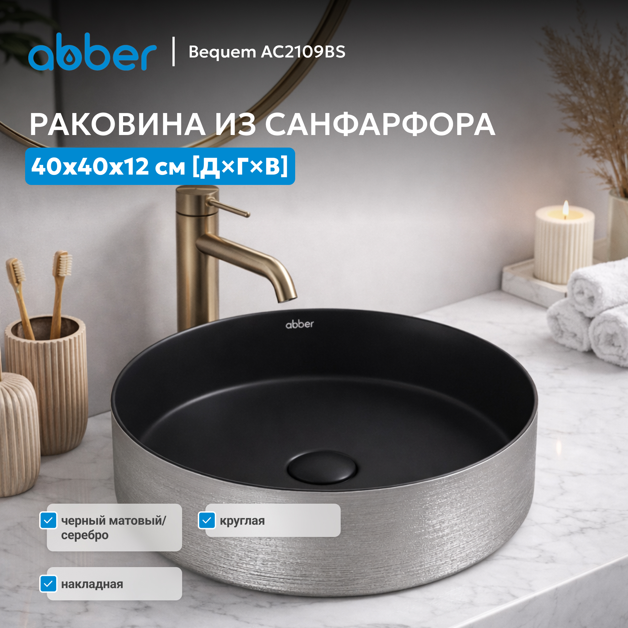 Раковина накладная ABBER Bequem AC2109BS черный матовый с серебром