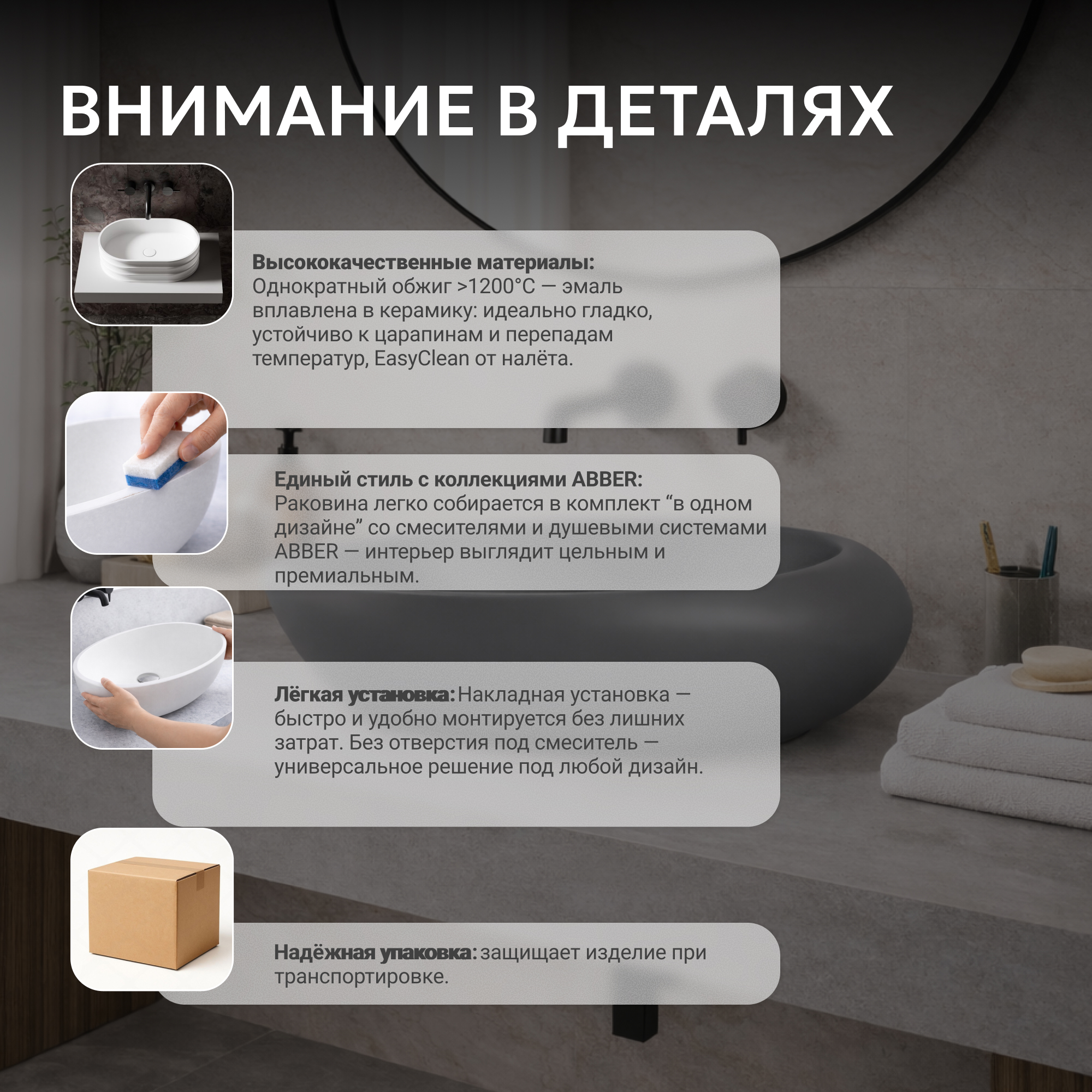 Раковина накладная ABBER Bequem AC2107MG серая матовая