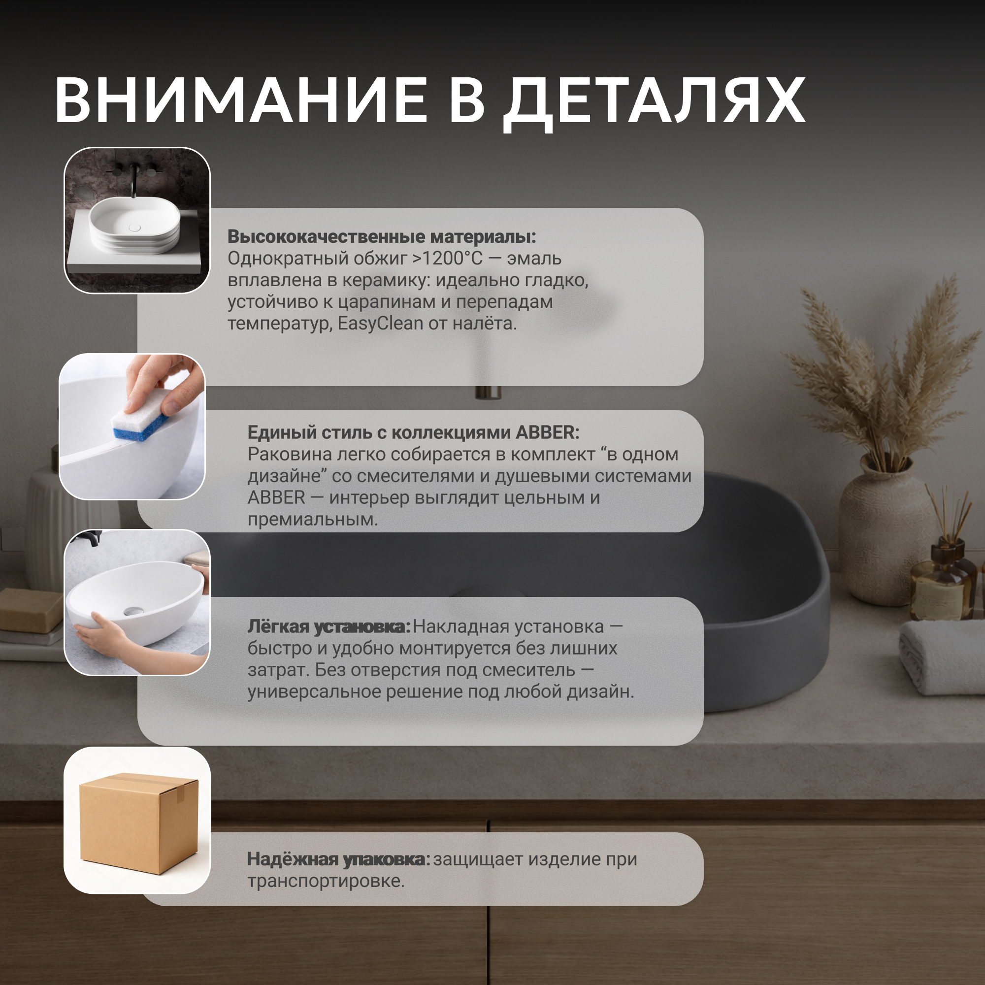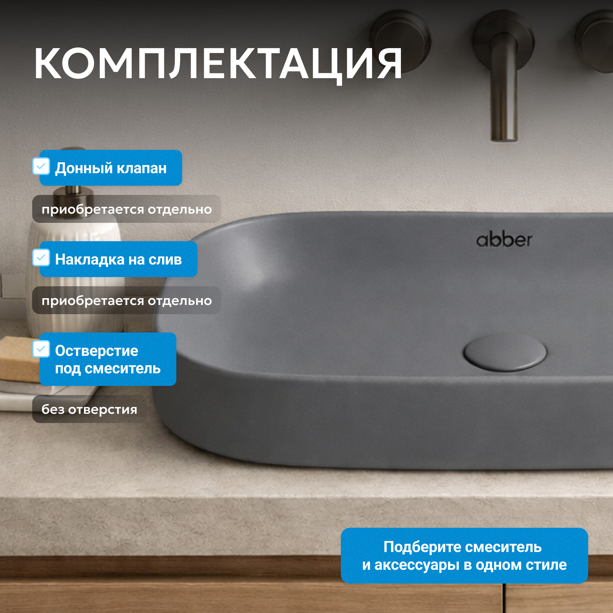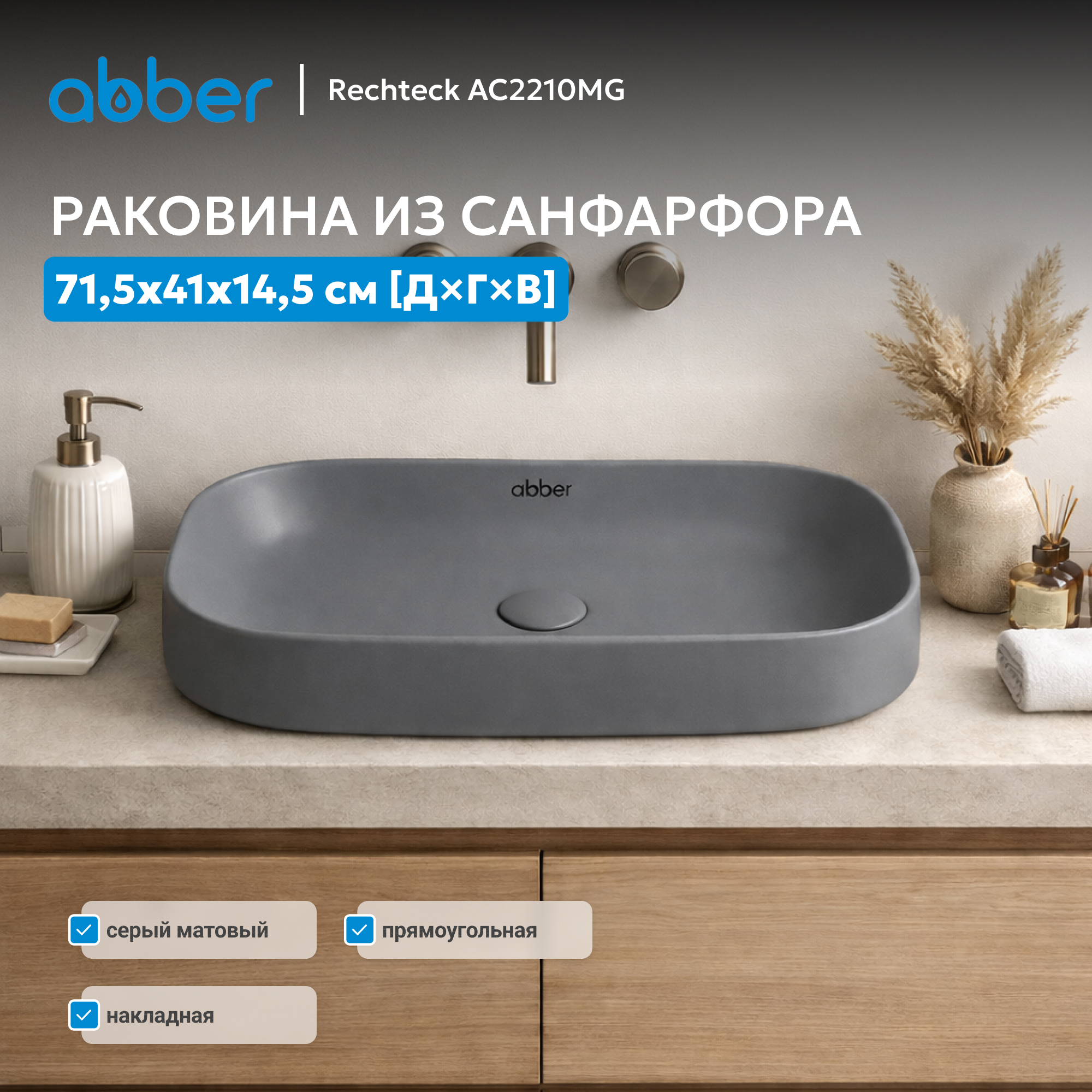 Раковина накладная ABBER Rechteck AC2210MG серая матовая