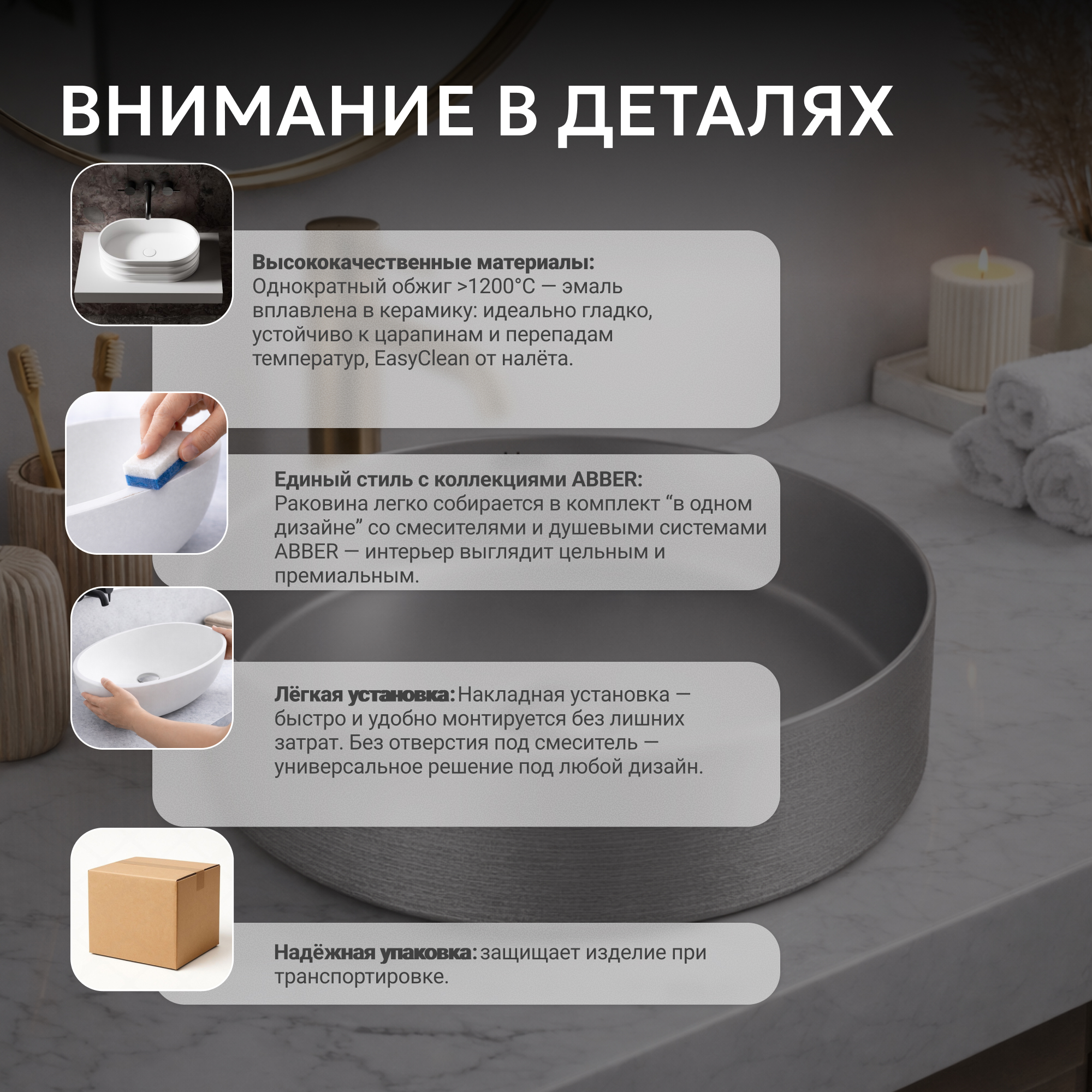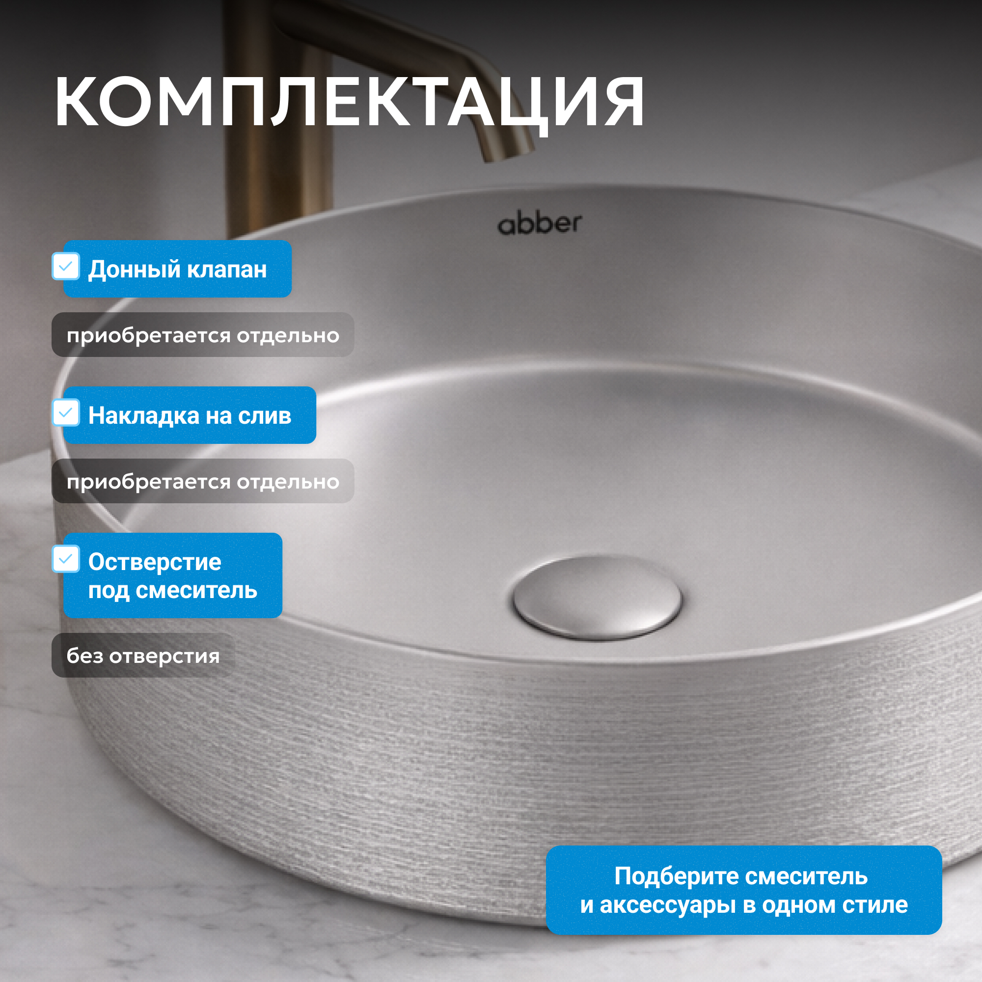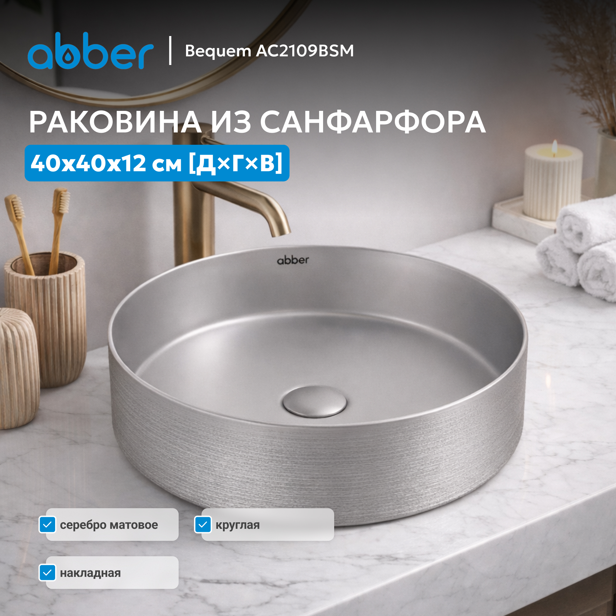 Раковина накладная ABBER Bequem AC2109BSM серебро матовое