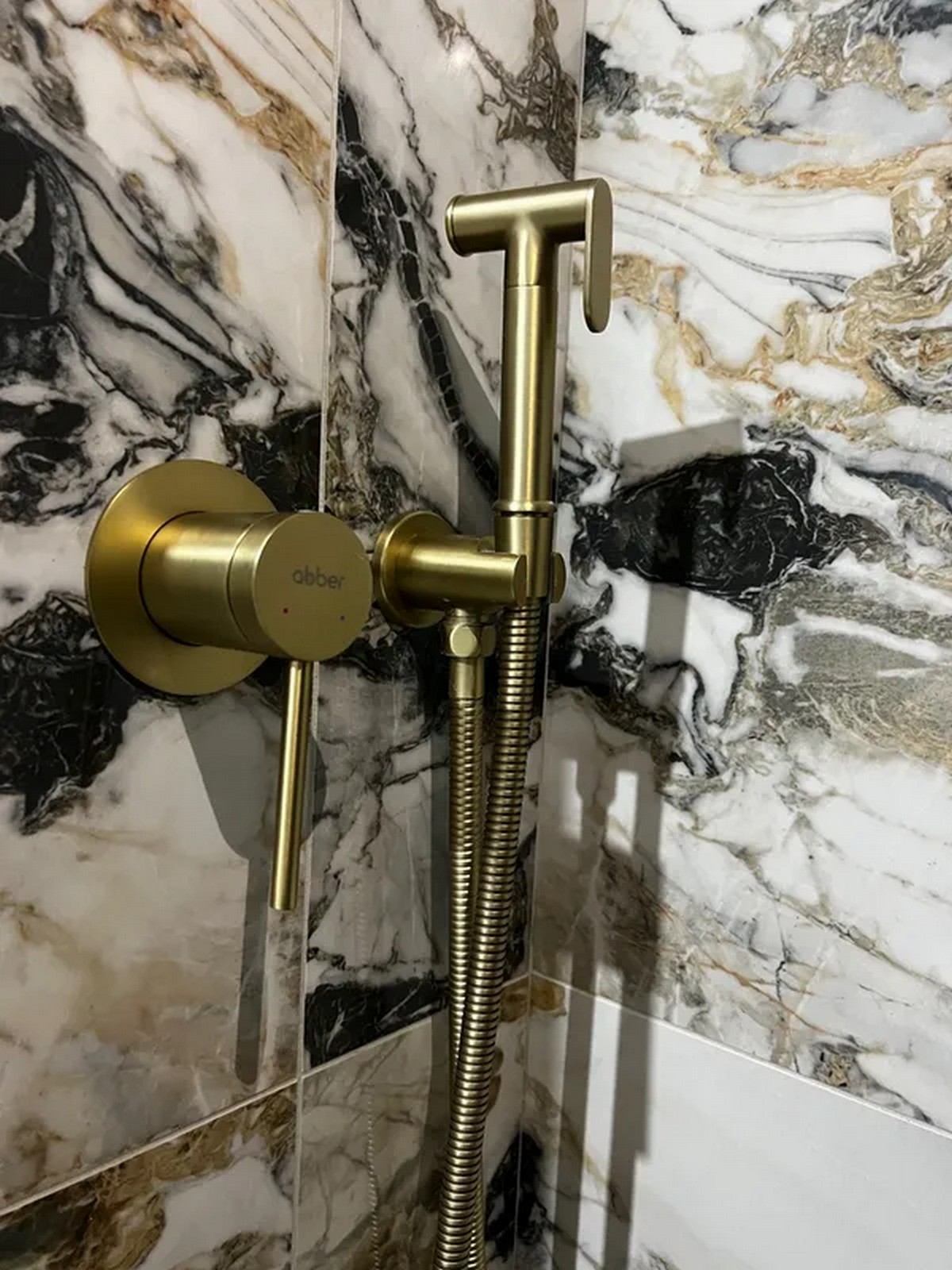 Смеситель ABBER Emotion AF8825G с гигиеническим душем, золото матовое