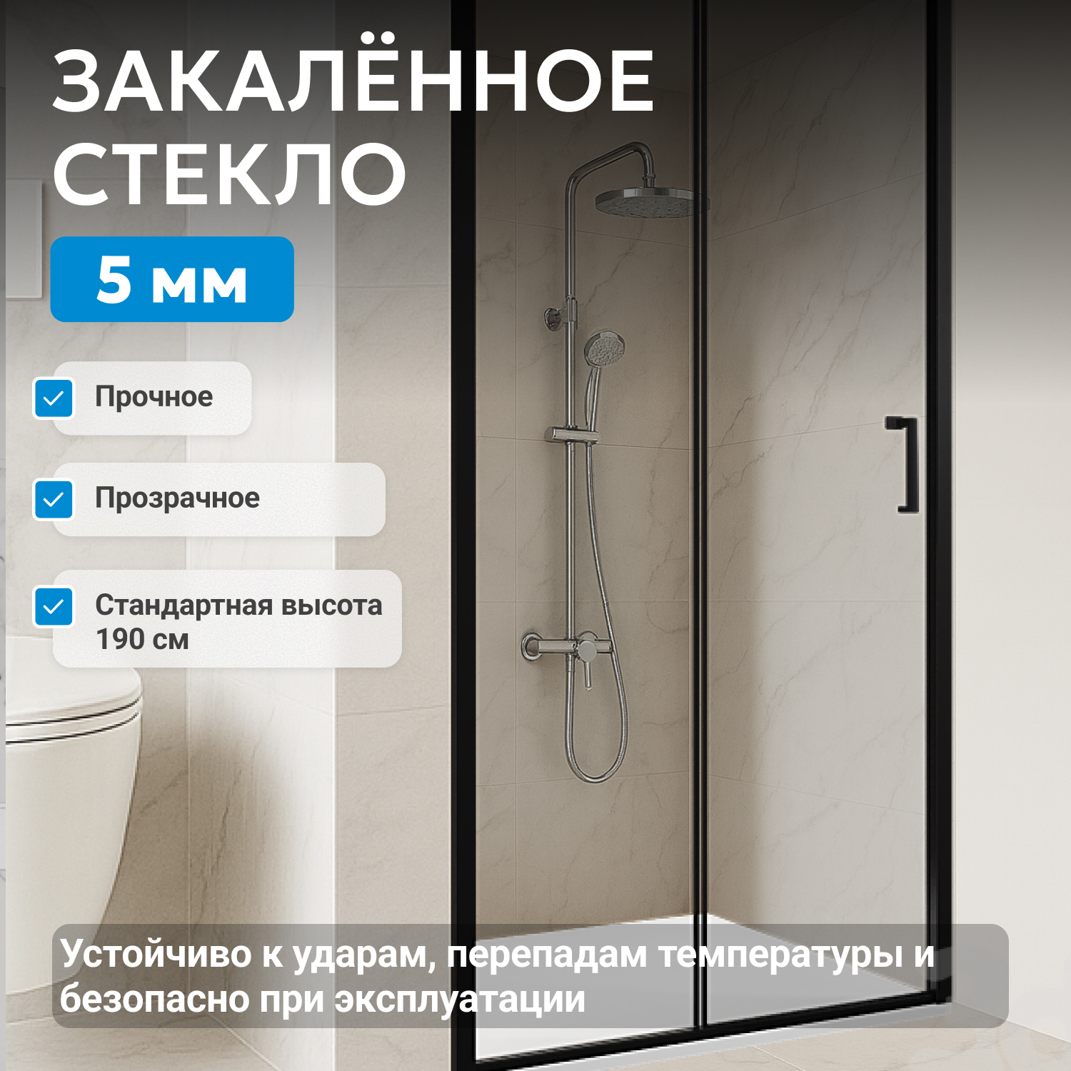 - закаленное, прозрачное стекло 5 мм