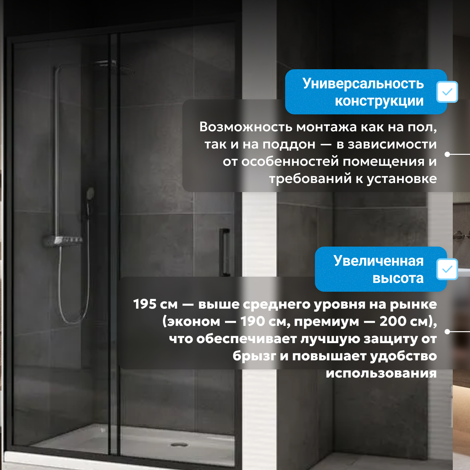 - возможна установка на пол и на поддон, поддон приобретается отдельно