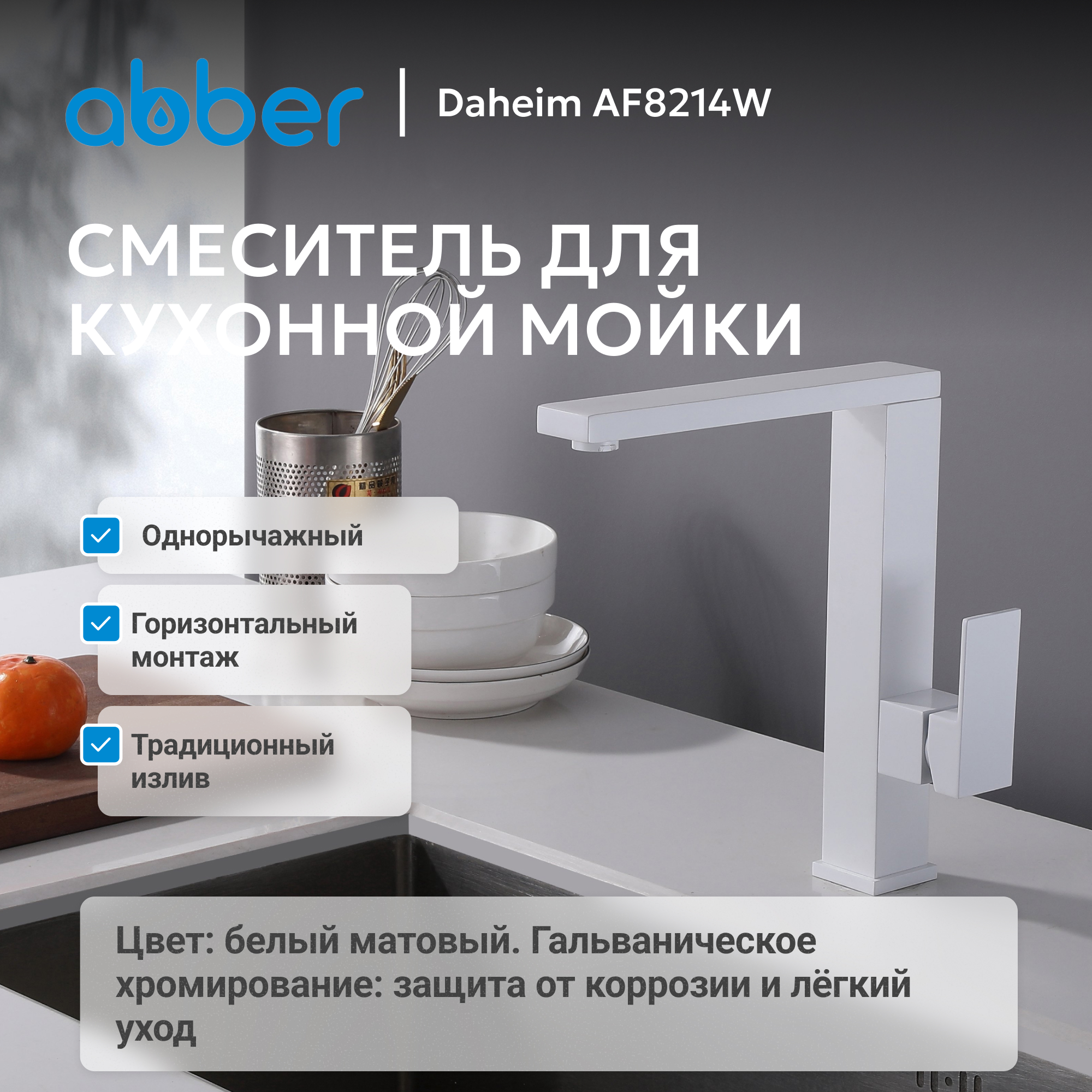 Смеситель ABBER Daheim AF8214W для кухни, белый матовый