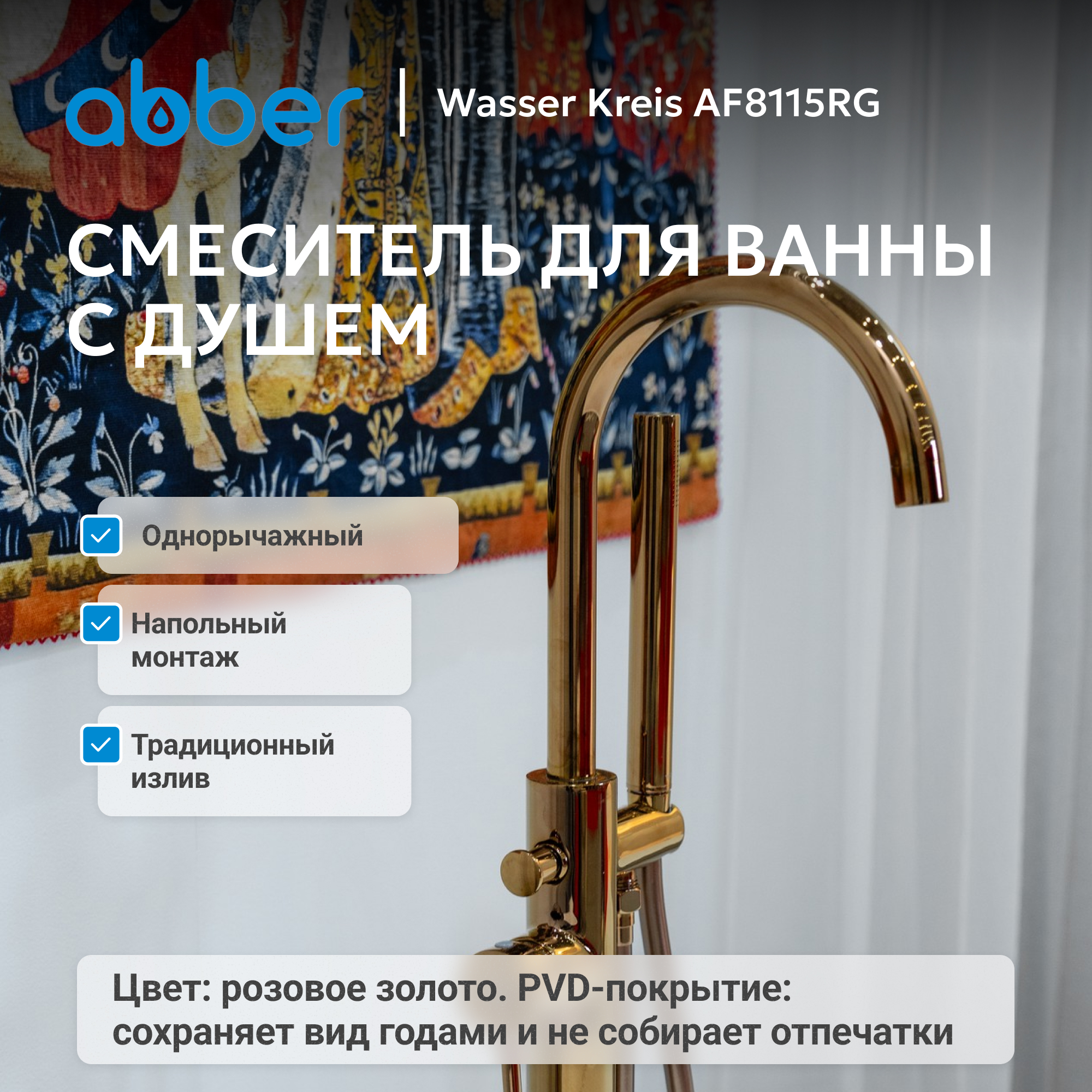 Смеситель ABBER Wasser Kreis AF8115RG напольный для ванны, розовое золото
