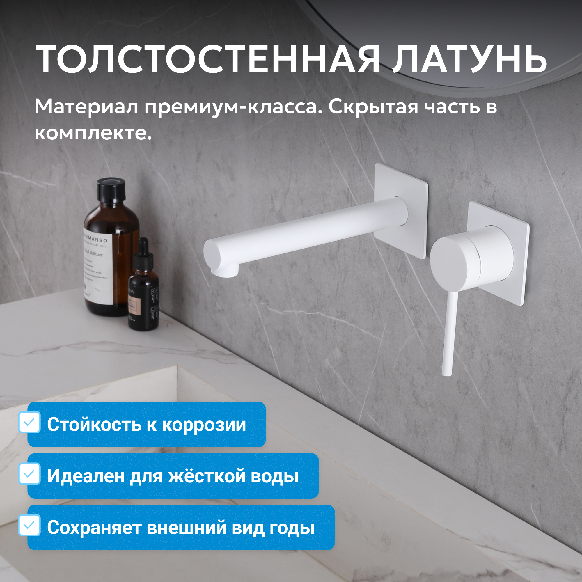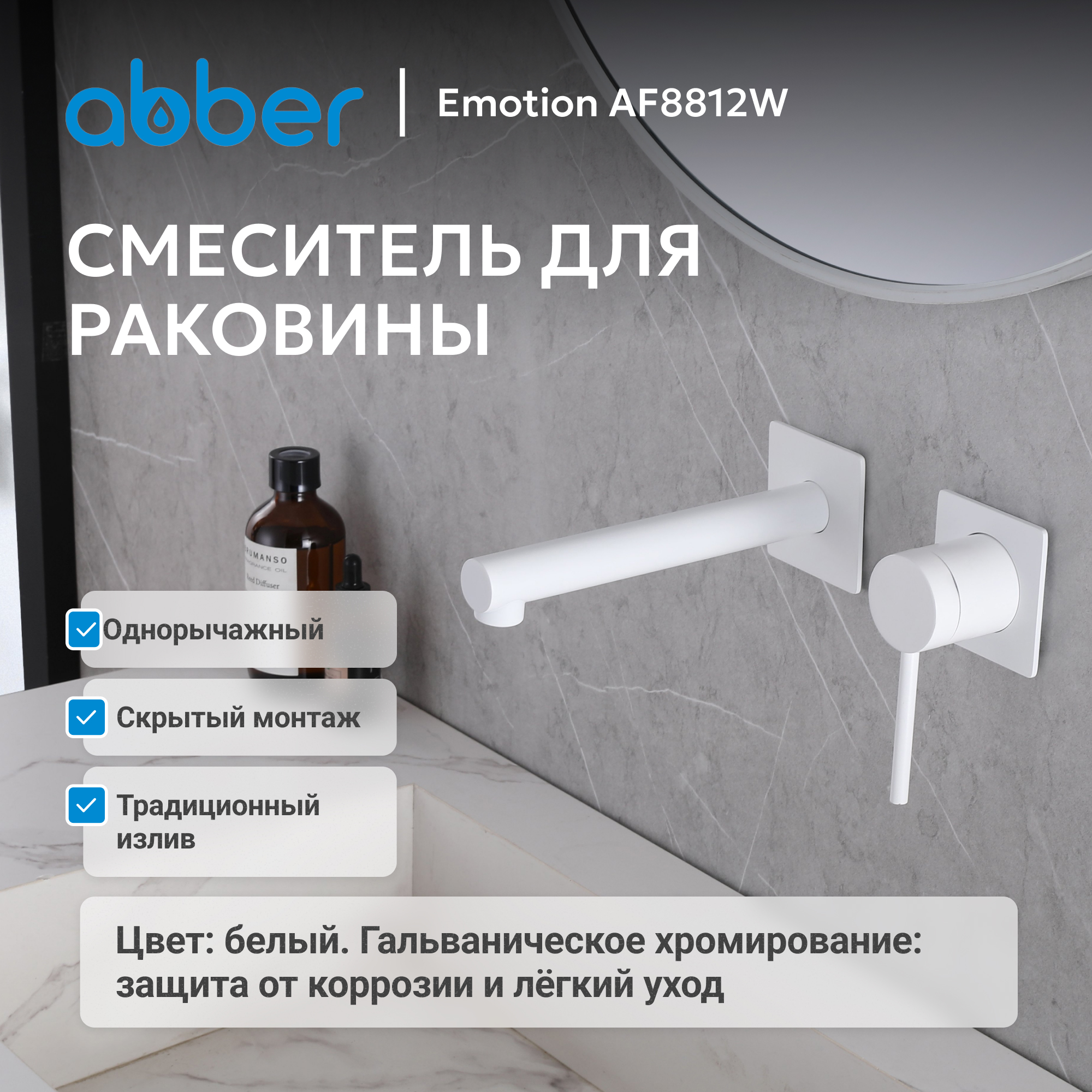 Смеситель ABBER Emotion AF8812W для раковины скрытого монтажа, белый матовый