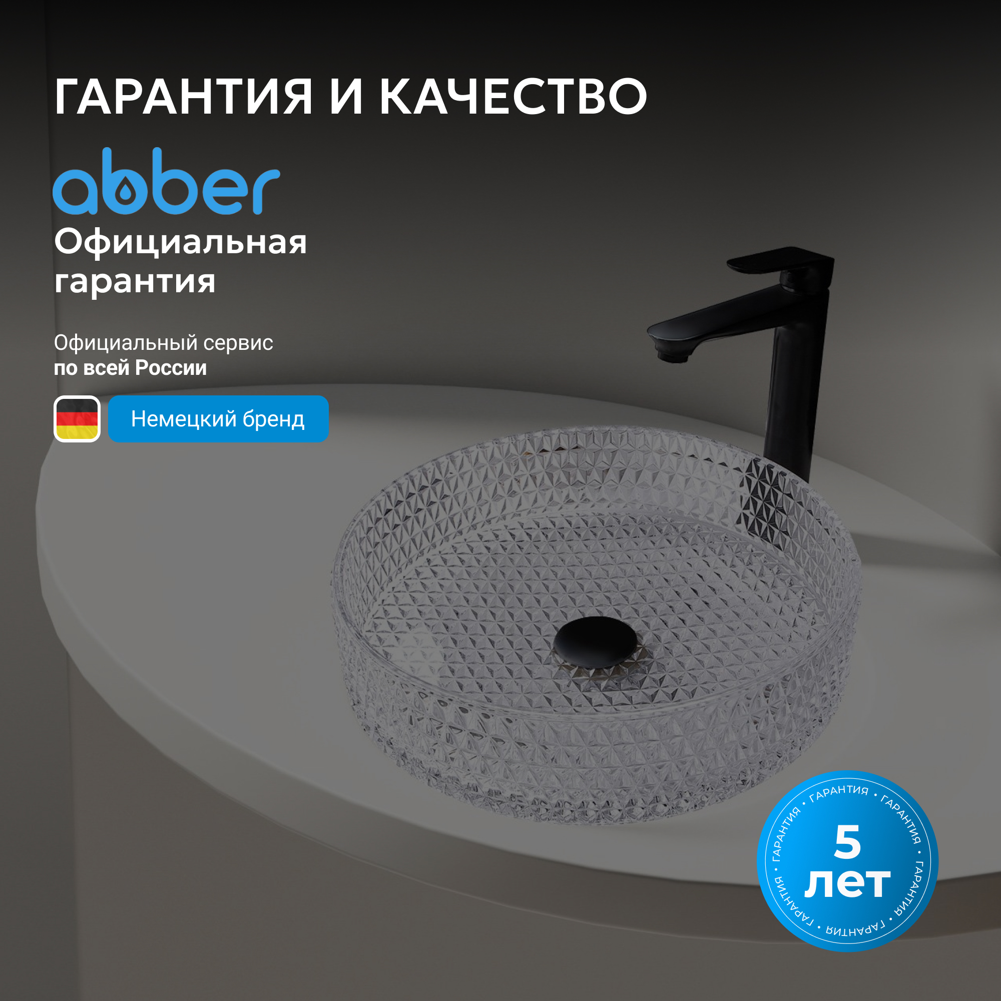 Раковина накладная стеклянная ABBER Glas AK2301 прозрачная