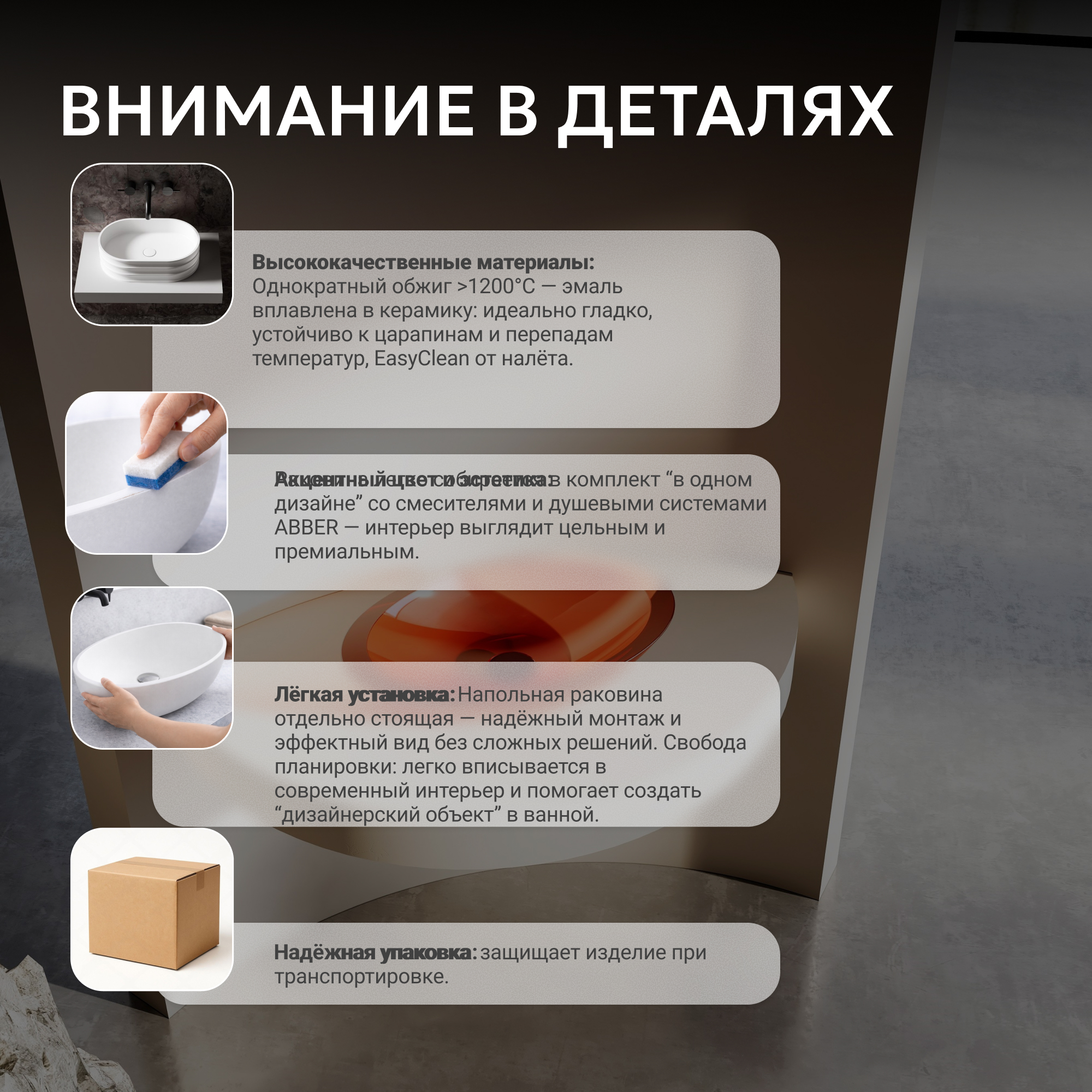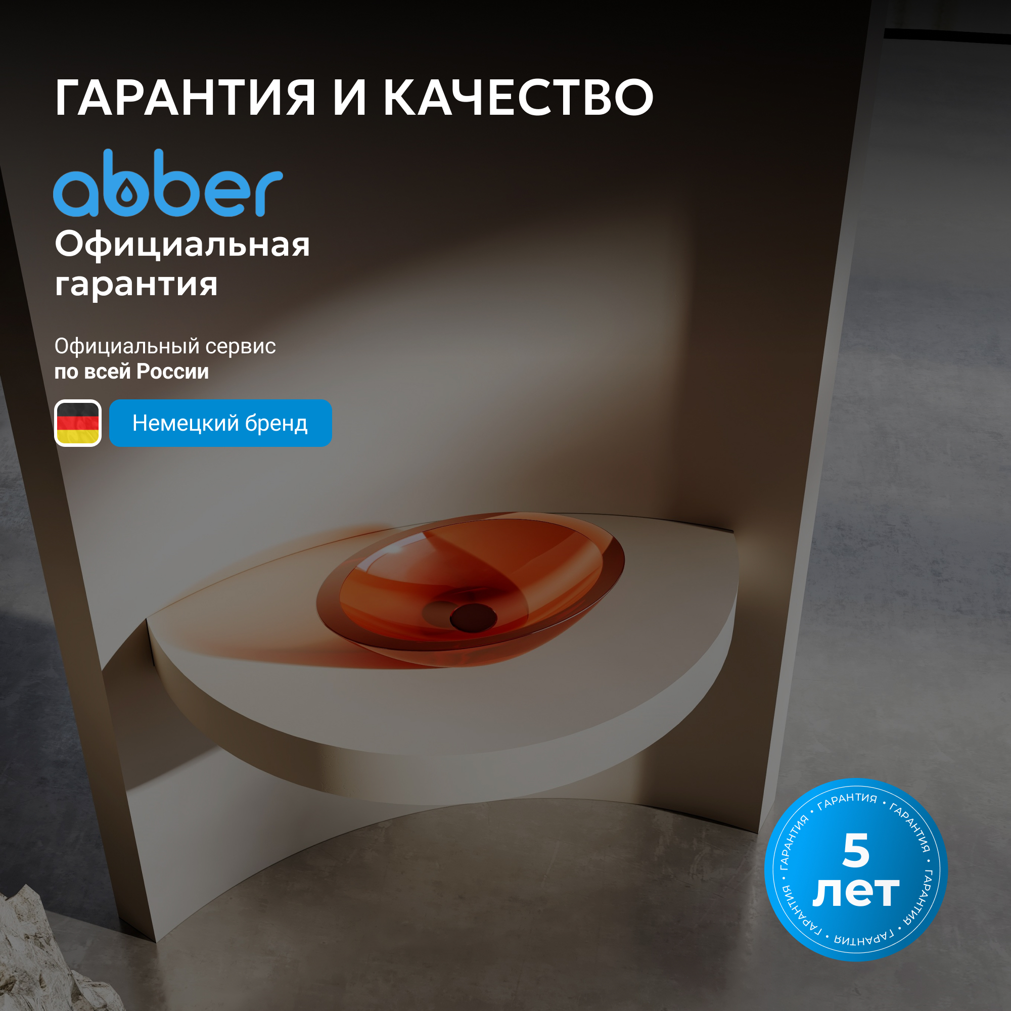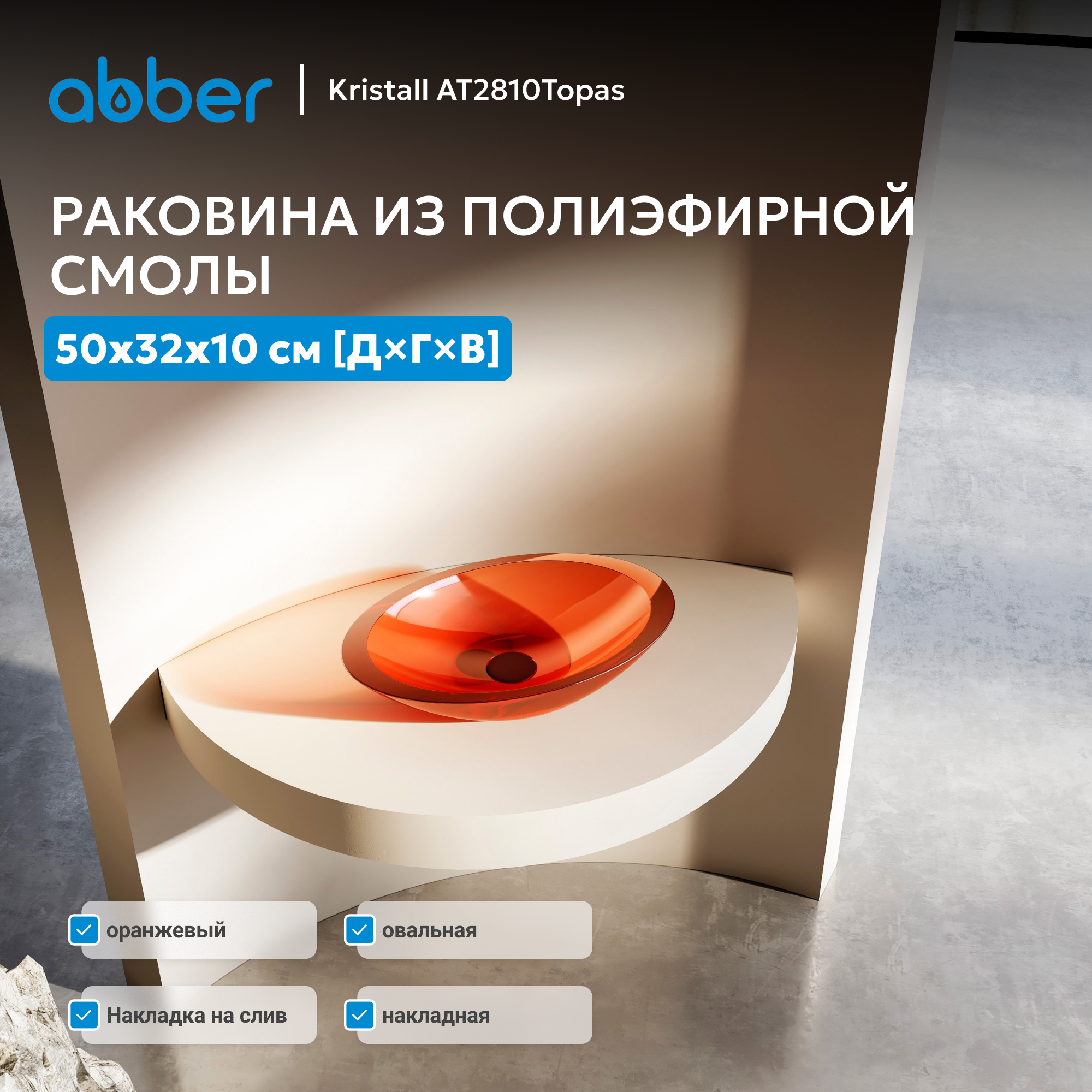Раковина накладная прозрачная ABBER Kristall AT2810Topas оранжевая