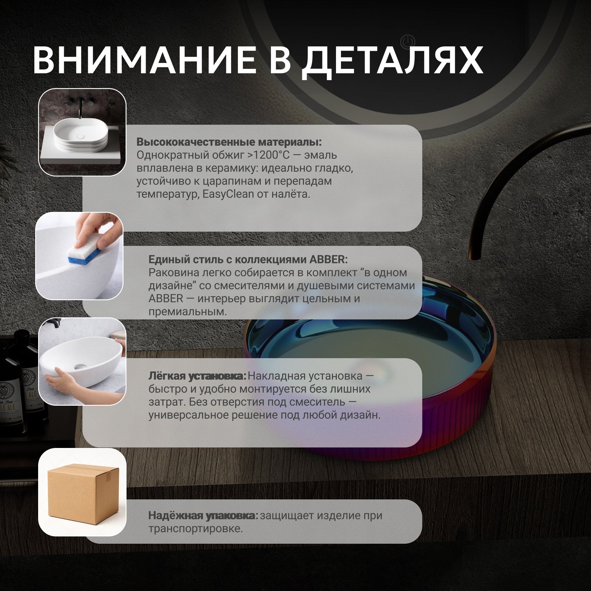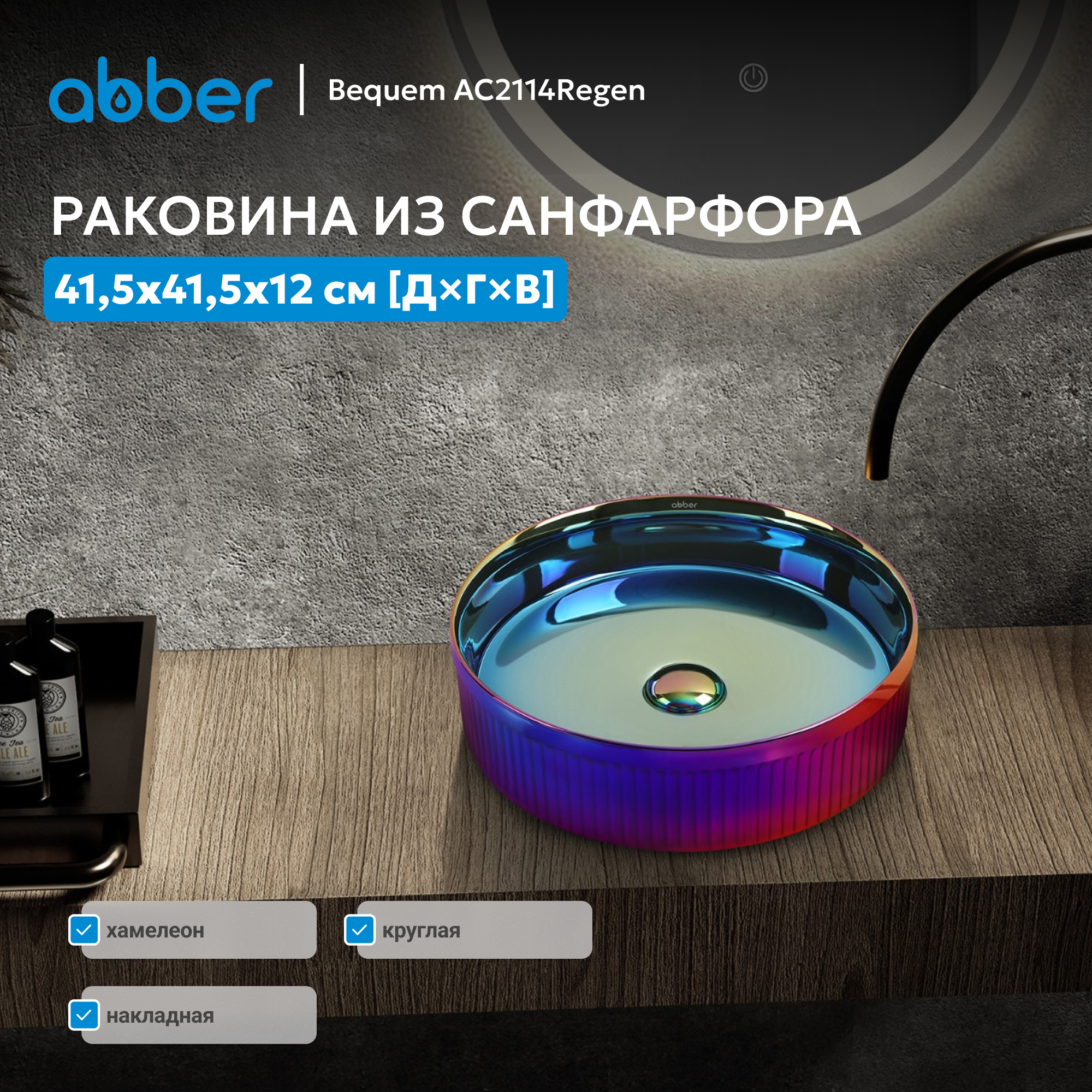 Раковина накладная ABBER Bequem AC2114Regen хамелеон