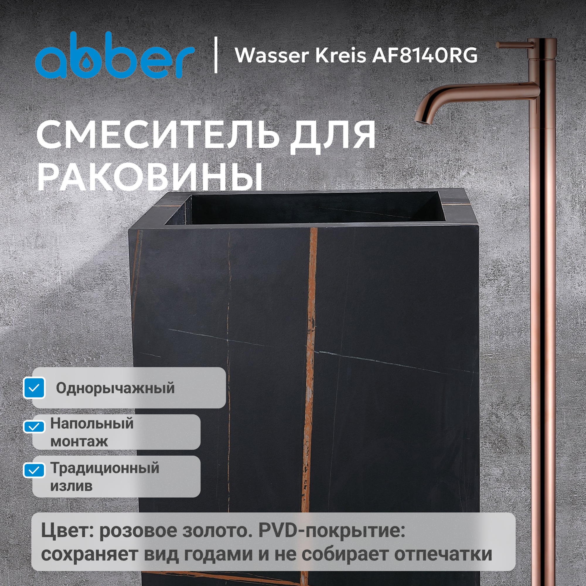 Смеситель ABBER Wasser Kreis AF8140RG напольный для раковины, розовое золото