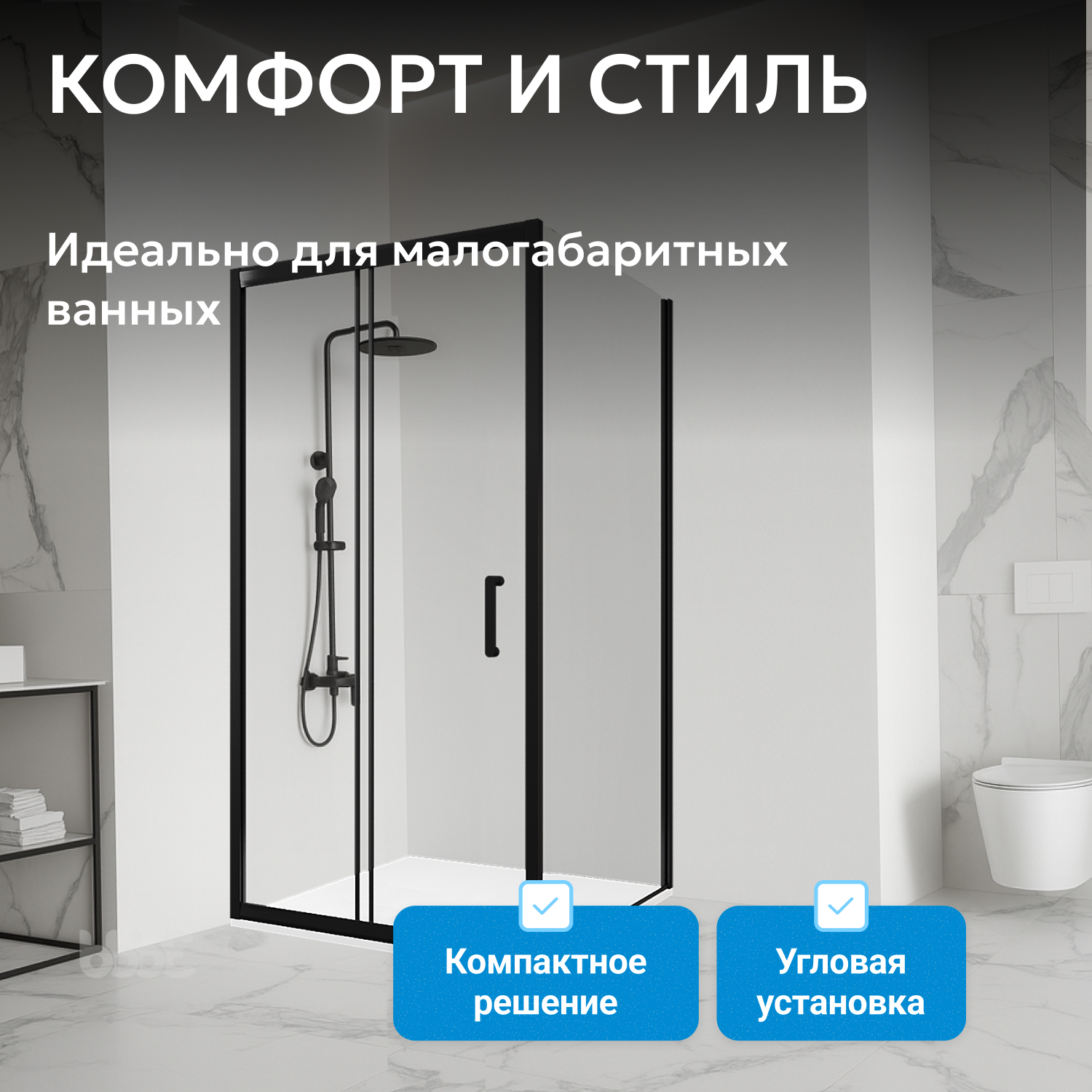 Минималистичный чёрный профиль гармонично сочетается с современными интерьерами. Раздвижная дверь на двойных роликах обеспечивает плавность хода, а эргономичная пластиковая ручка повышает удобство пользования.