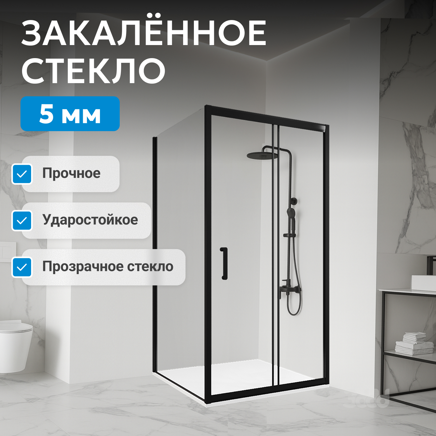 Душевой уголок ABBER Schwarzer Diamant AG30150B5-S90B5 выполнен в минималистичном стиле и органично вписывается в современные ванные комнаты. Прямоугольная форма, прозрачное закалённое стекло толщиной 5 мм и чёрный профиль придают конструкции современный вид и визуальную лёгкость. Пластиковая ручка и система двойных роликов обеспечивают комфортное открывание раздвижной двери.