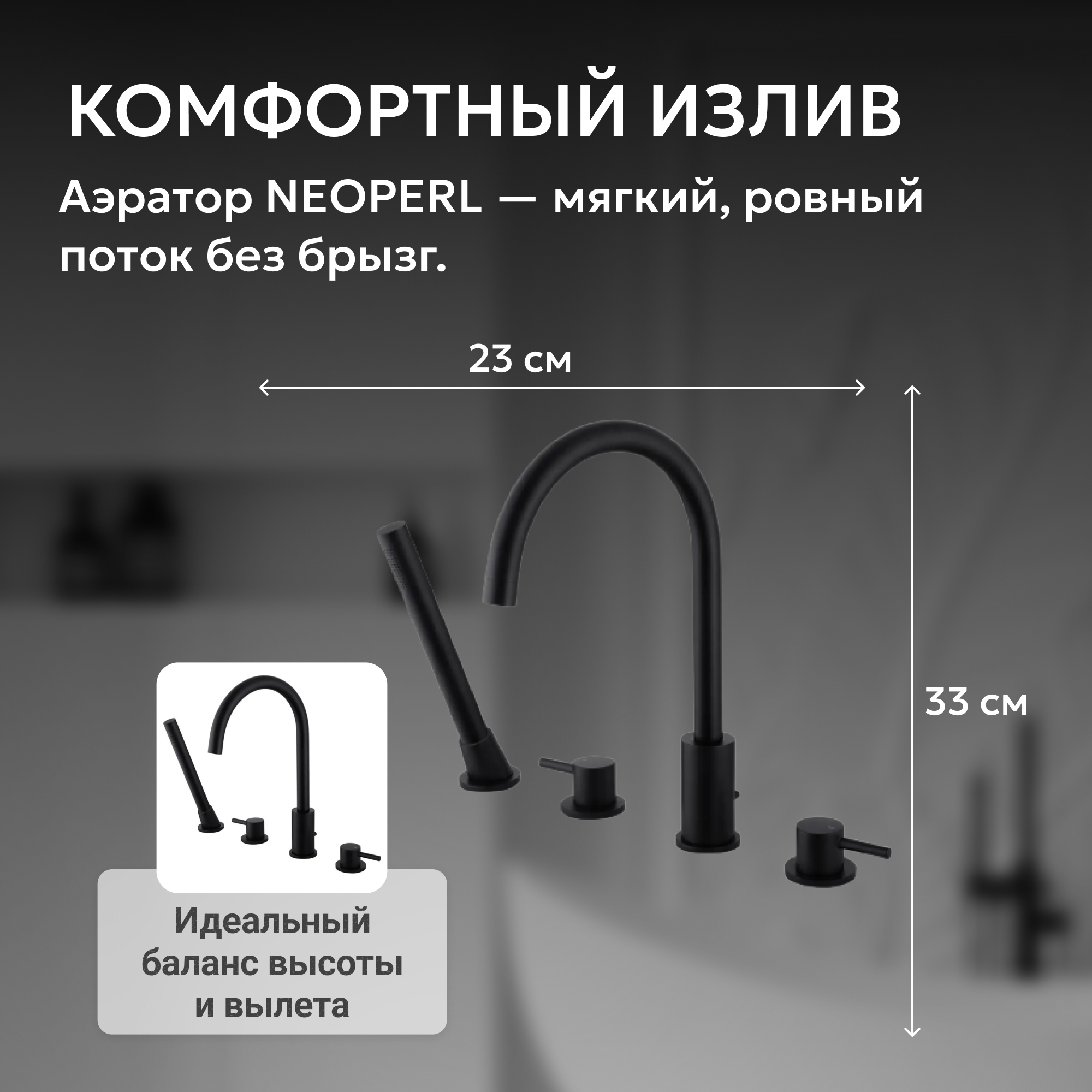 Смеситель ABBER Wasser Kreis AF8113B на борт ванны, черный матовый