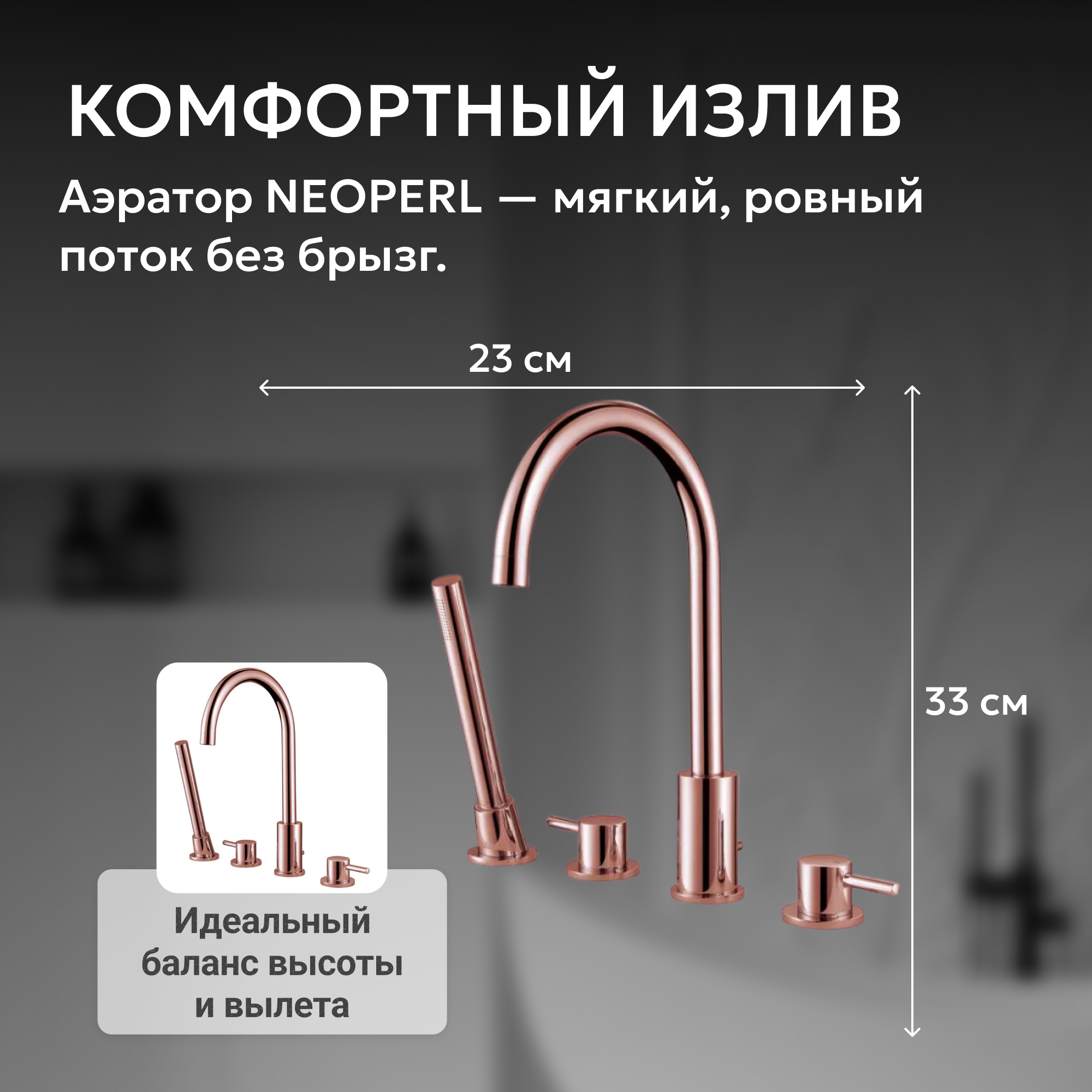 Смеситель ABBER Wasser Kreis AF8113RG на борт ванны, розовое золото