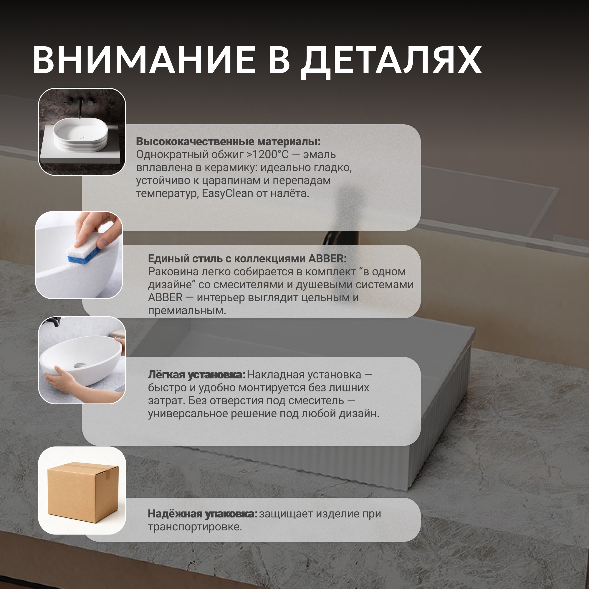 Раковина накладная ABBER Rechteck AC2216 белая
