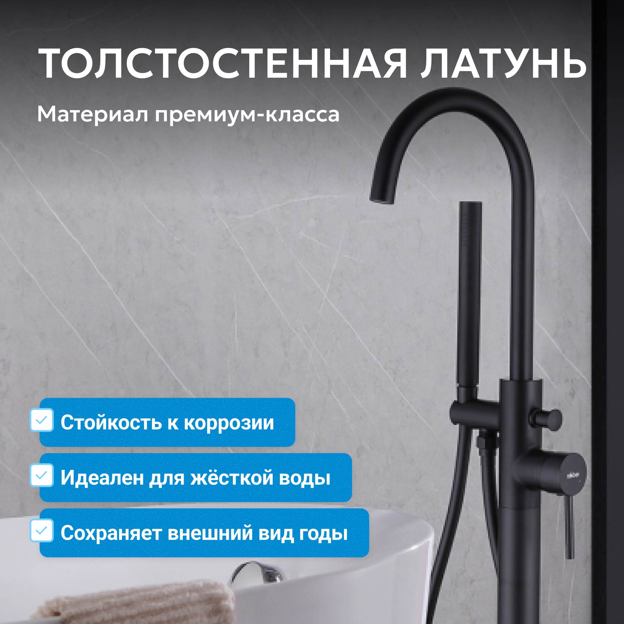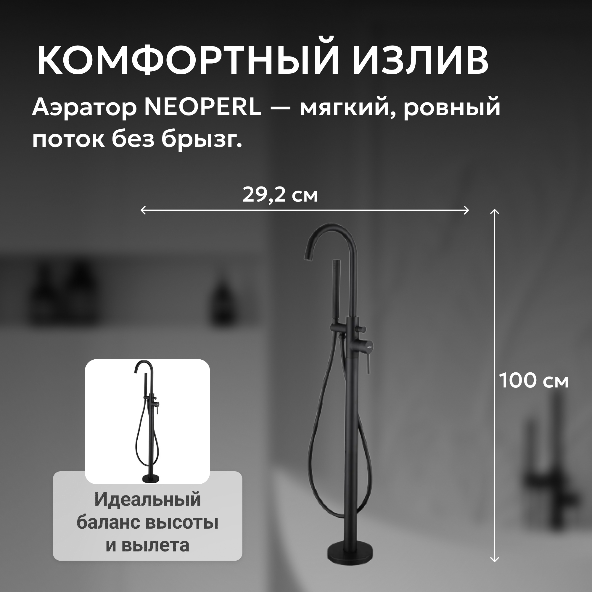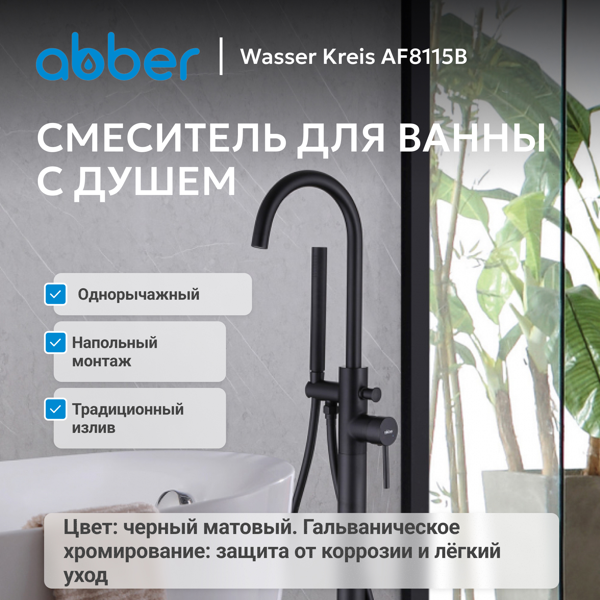 Смеситель ABBER Wasser Kreis AF8115B напольный для ванны, черный матовый