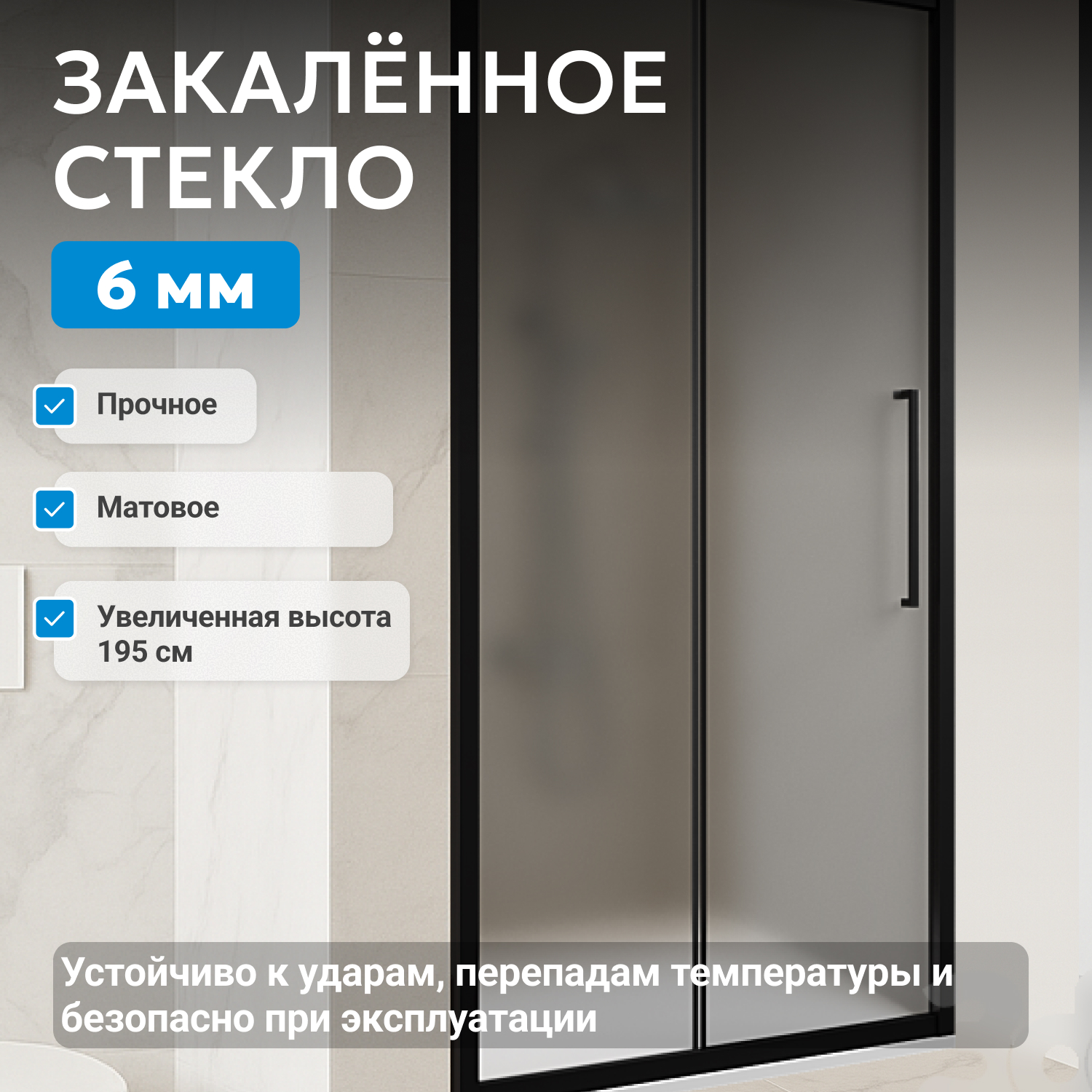 - закаленное, матовое стекло 6 мм